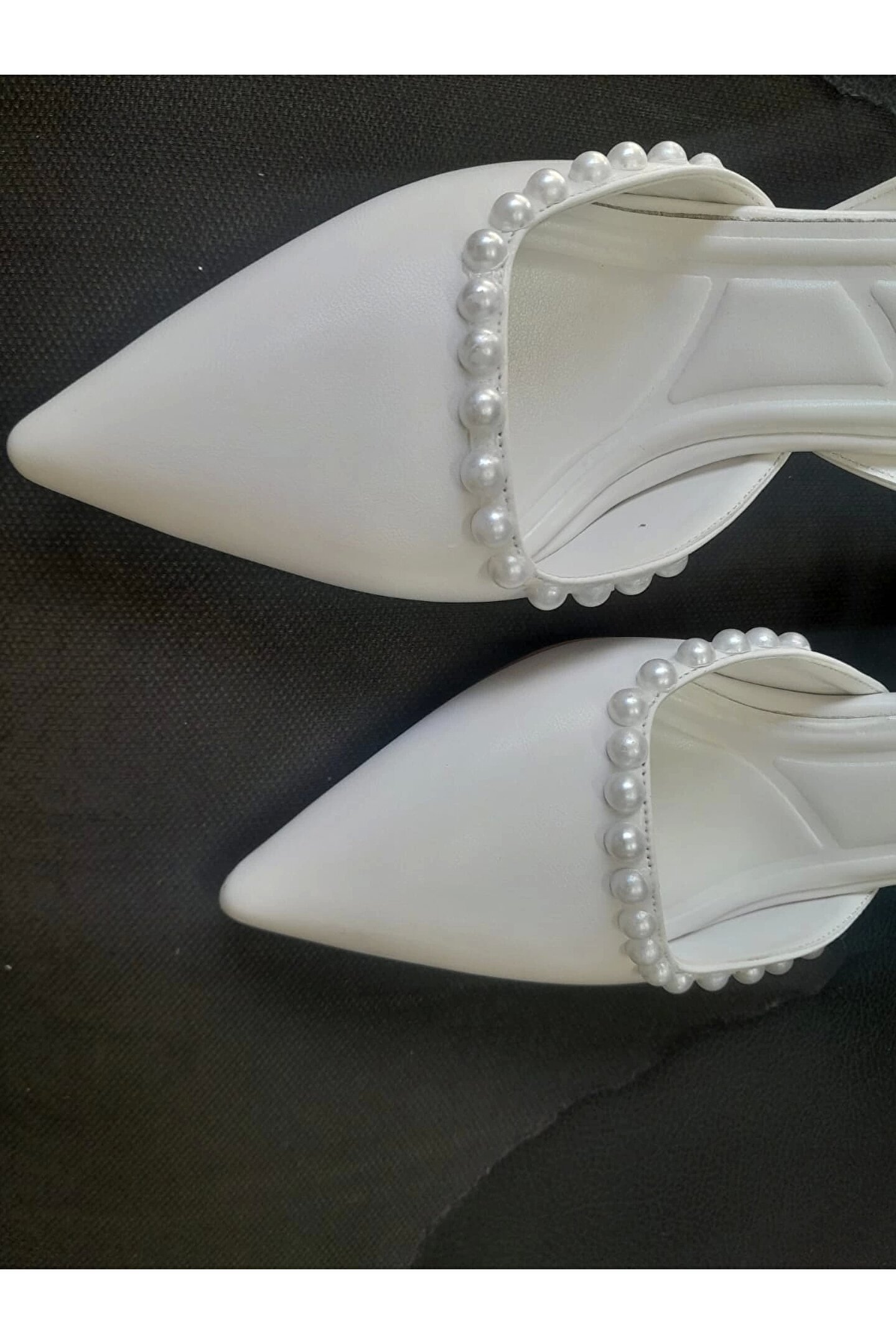 GULT Kadın 5 Cm Özel Topuklu Sivri Ayakkabı Nişantaşı Beyaz İNCİLİ