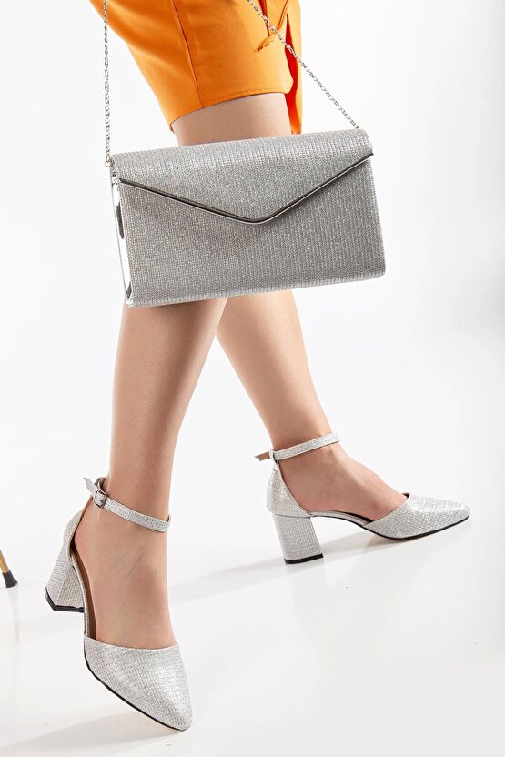 GULT Kadın 5 cm Topuklu Günlük Yazlık Ayakkabı GÜMÜŞ KOMBİN