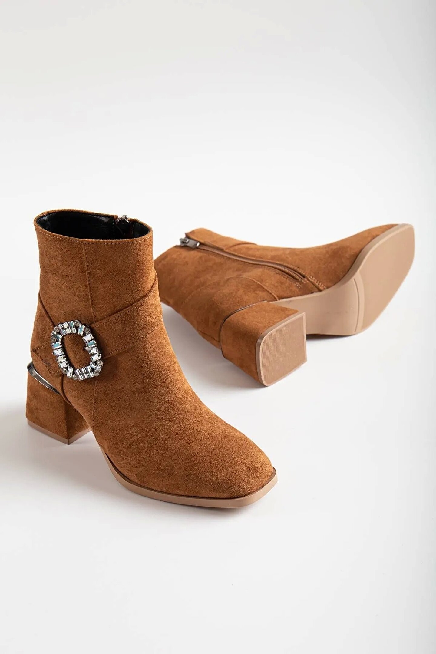 GULT Kadın 6 Cm Kut Burun Şık Dana Süet Bot Taba