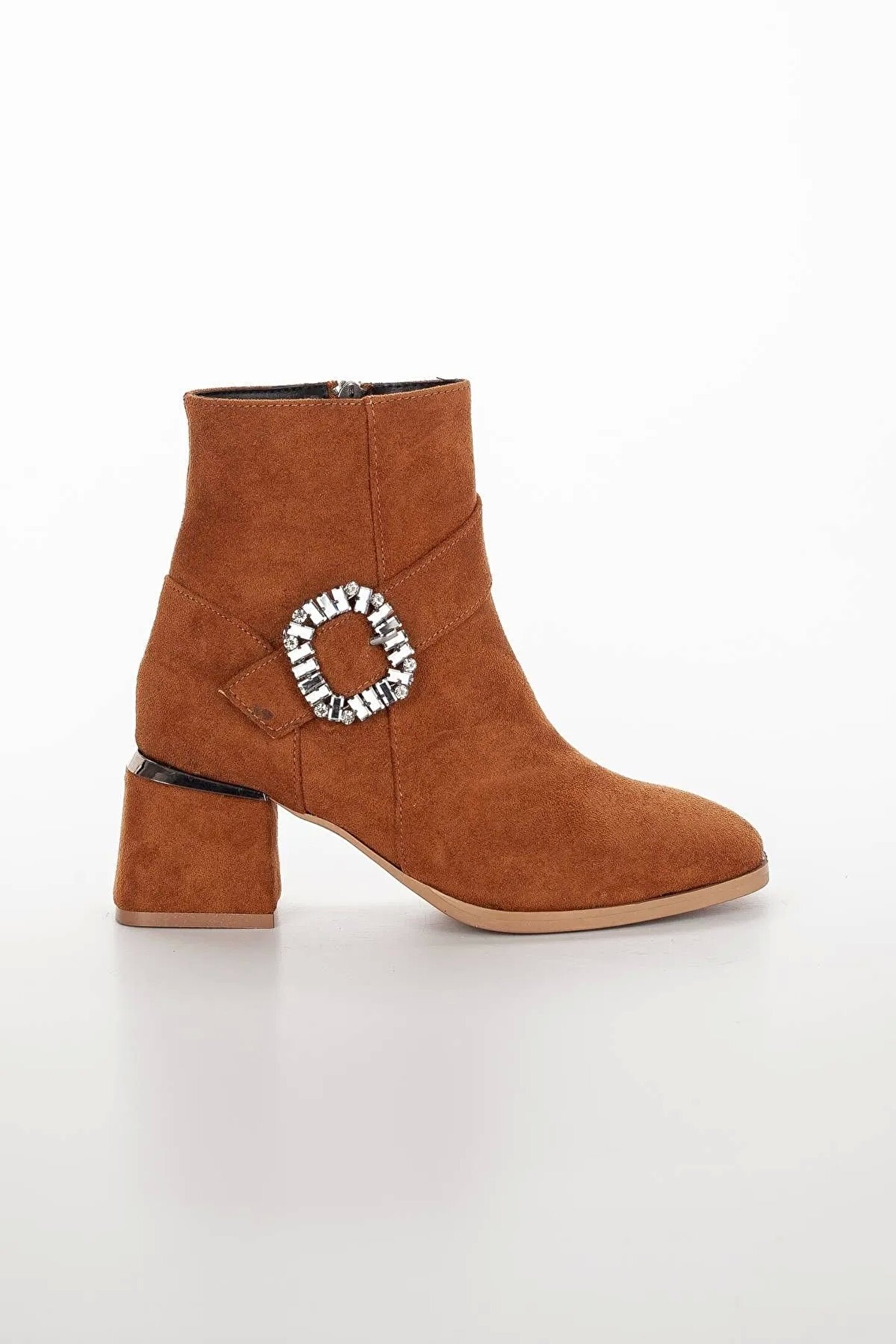 GULT Kadın 6 Cm Kut Burun Şık Dana Süet Bot Taba