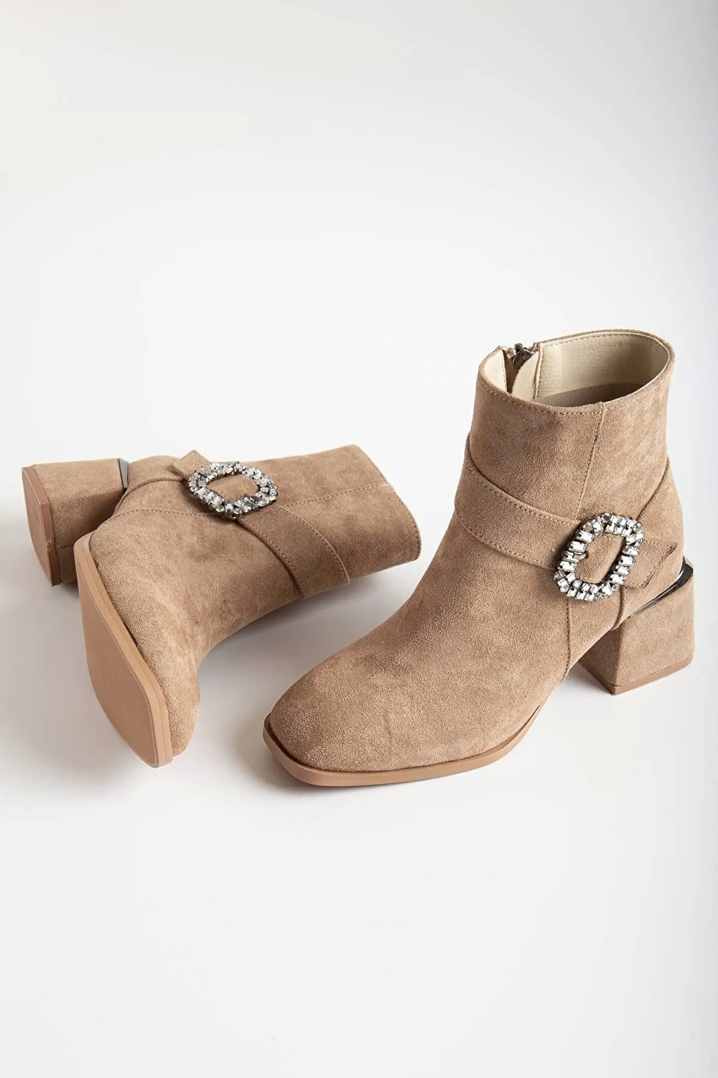 GULT Kadın 6 Cm Kut Burun Şık Dana Süet Bot Vizon