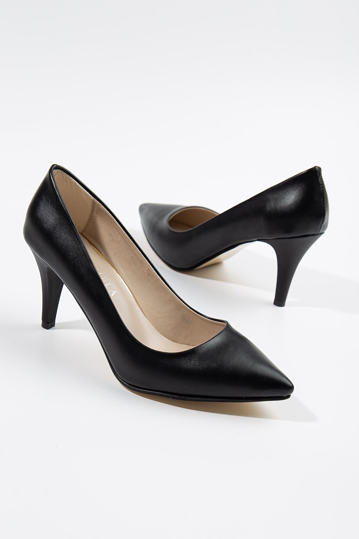 GULT Kadın 7cm Topuklu Stiletto Ve Çanta Takımı Siyah Cilt