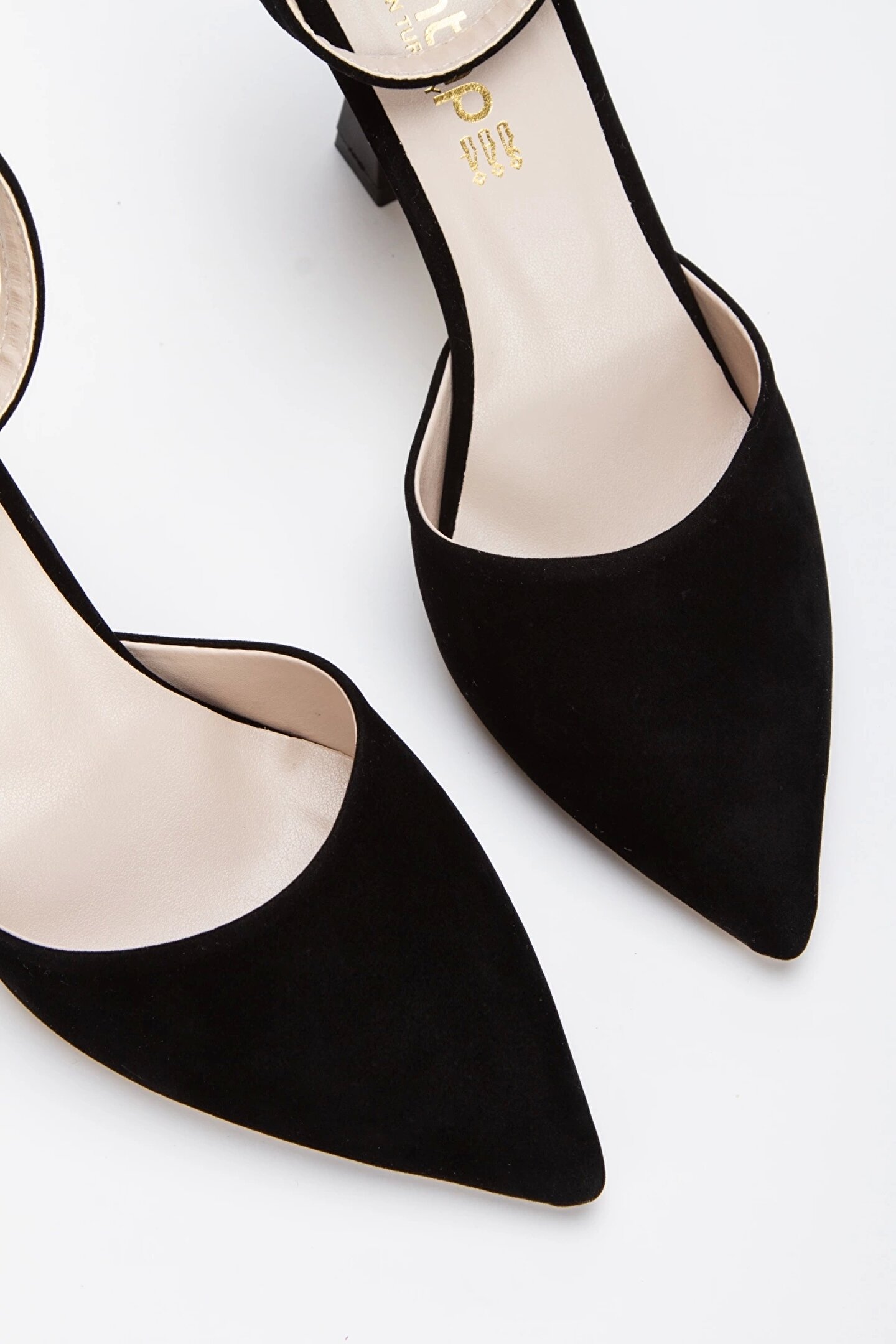 GULT Kadın 8 Cm Topuklu Siyah Süet Çanta Kombinli Stiletto Takımı