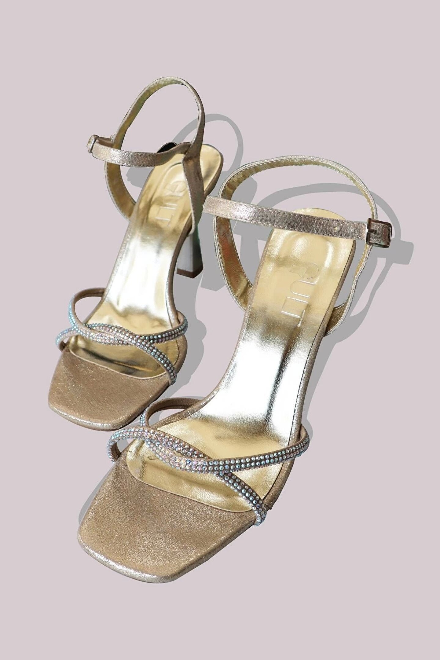 GULT Kadın Altın Sedef Ince Topuklu Yazlık Taş Işlemeli Ayakkabı Zerafet