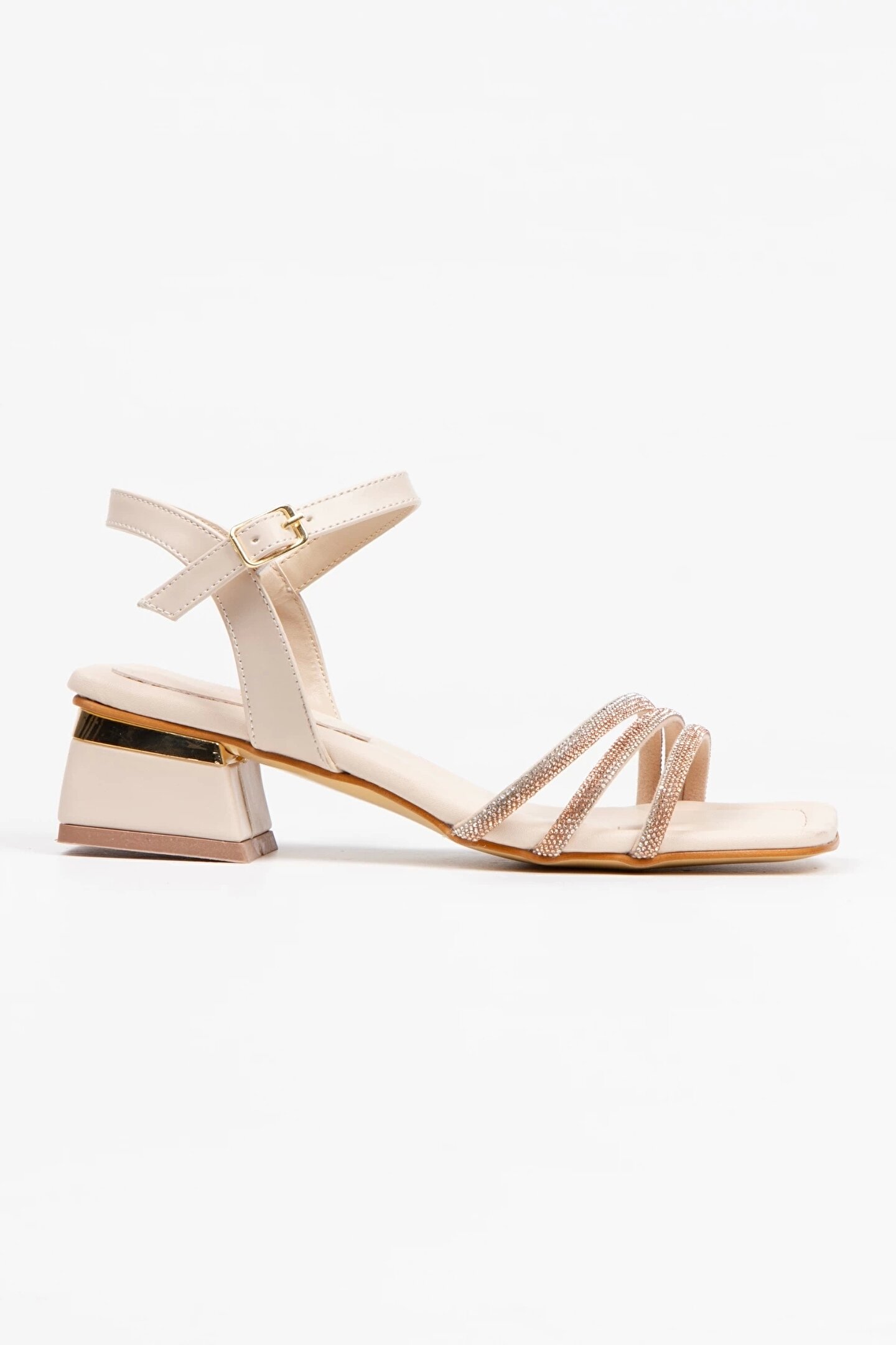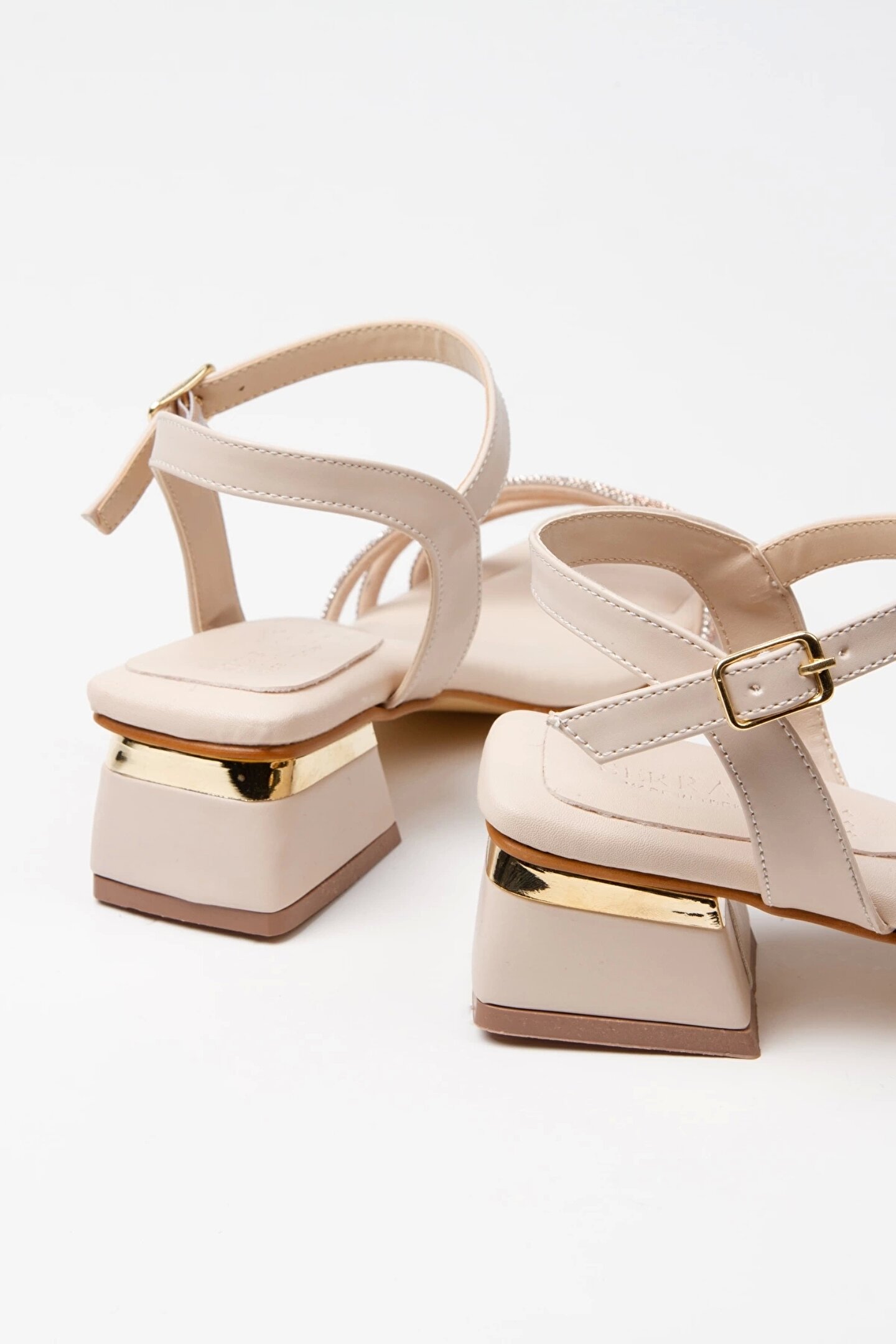 GULT Kadın Bej Kısa Kalın Topuklu Taşlı Abiye Ayakkabı