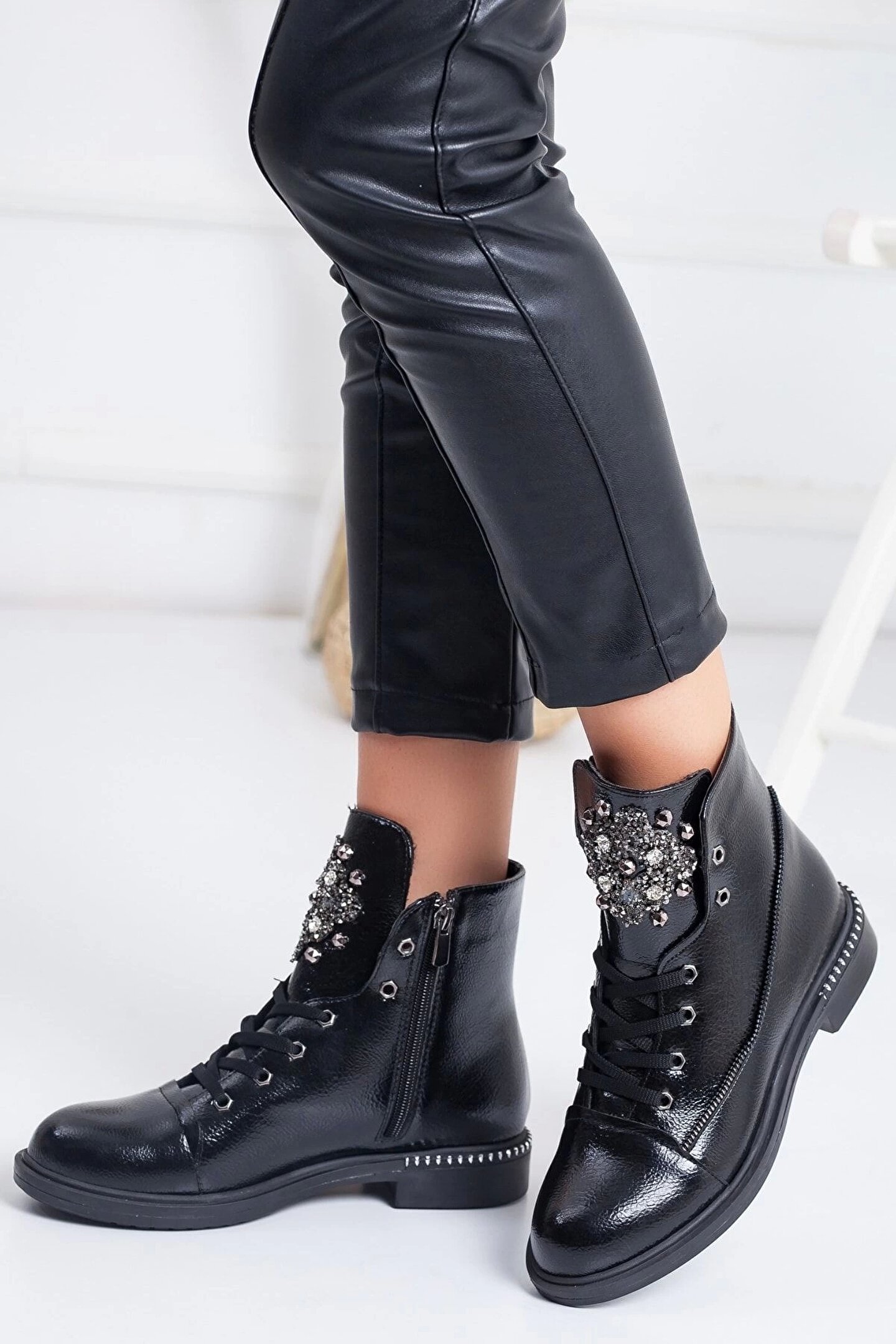 GULT Kadın Bot,taşlı Şık Exclusive Siyah Bot. Günlük Bot Stone