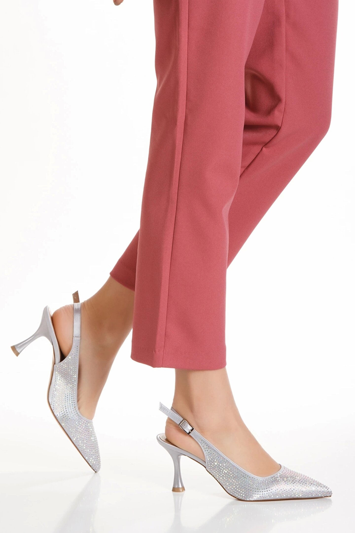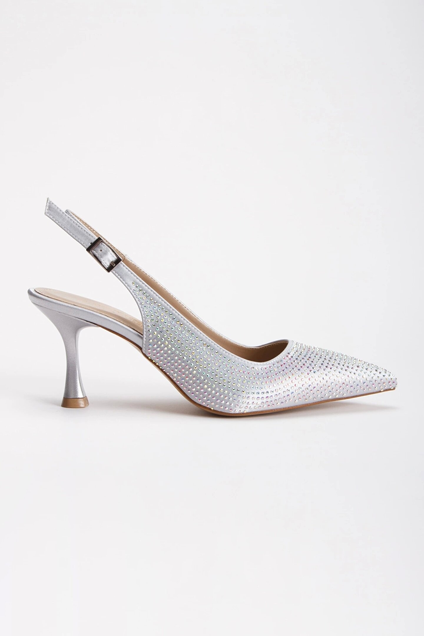 GULT Kadın Burnu Kapalı Arkası Açık Gece Ayakkabısı Gümüş