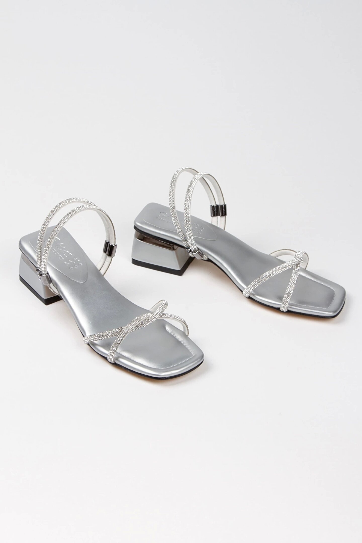 GULT Kadın Çapraz Taşlı Abiye Ayakkabı Gümüş