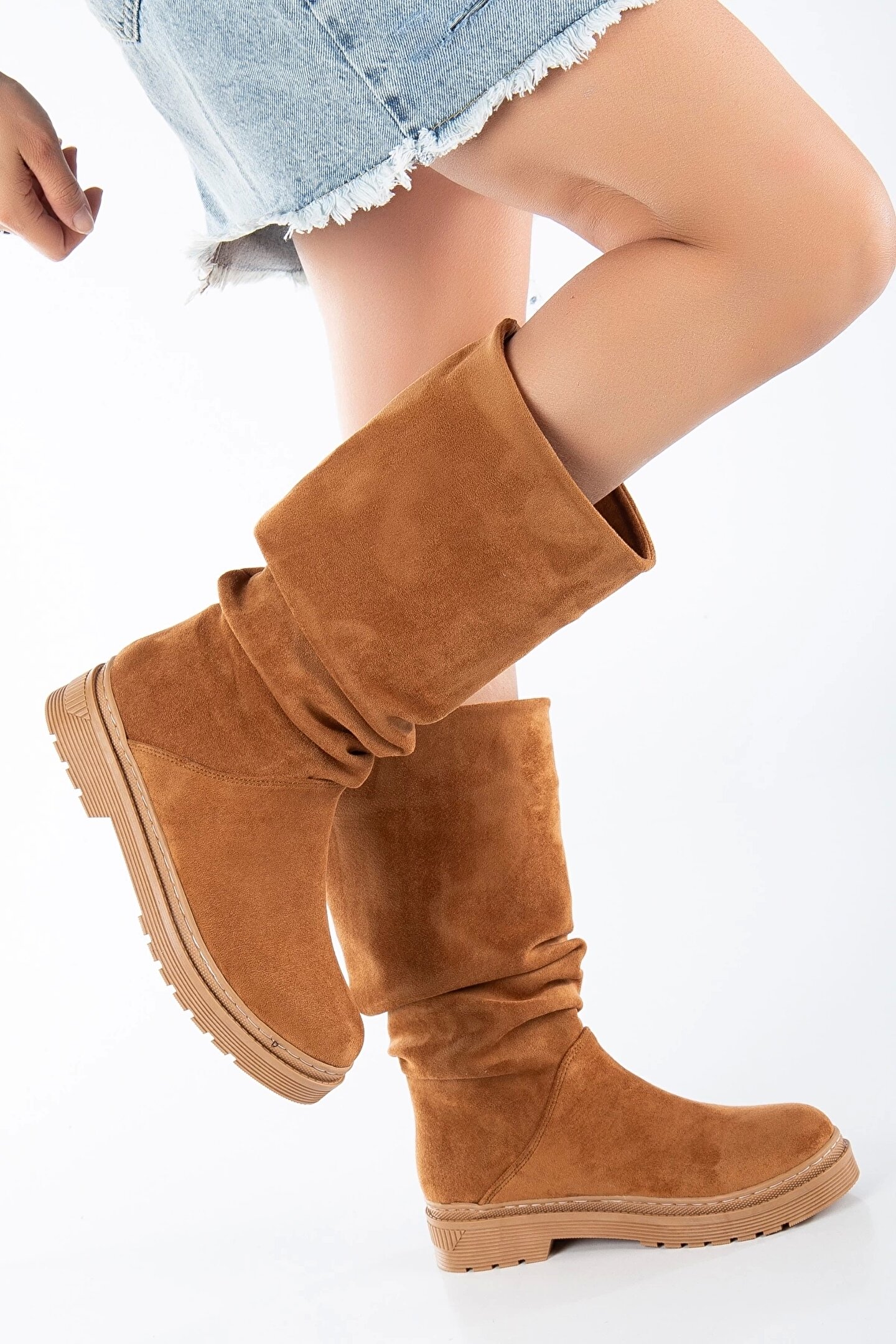 GULT Kadın Dana Süet Diz altı Çizme