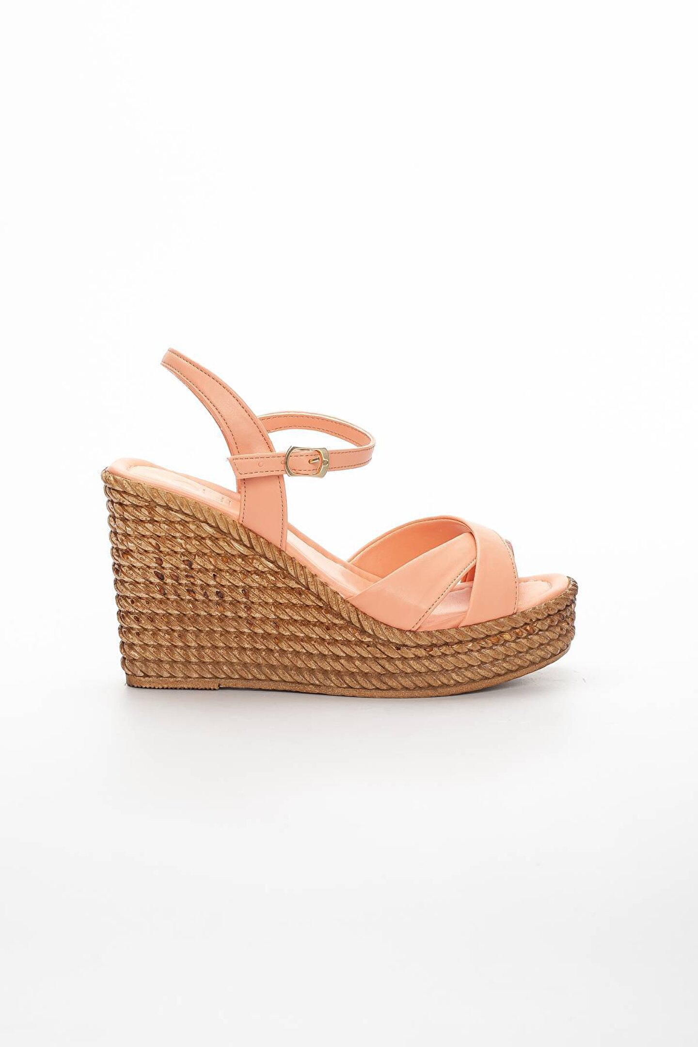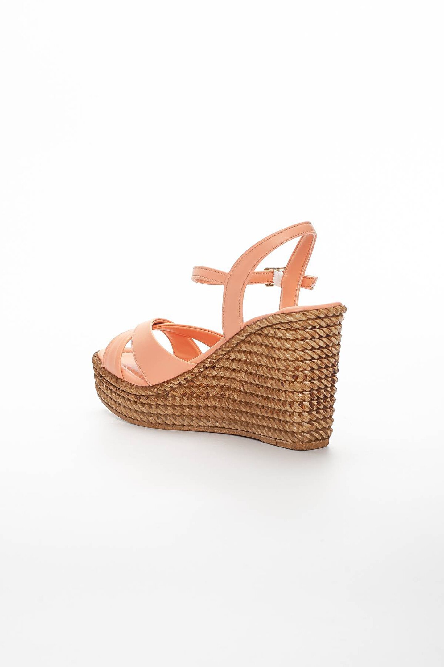 GULT Kadın Dolgu Topuklu Çapraz Sandalet Somon
