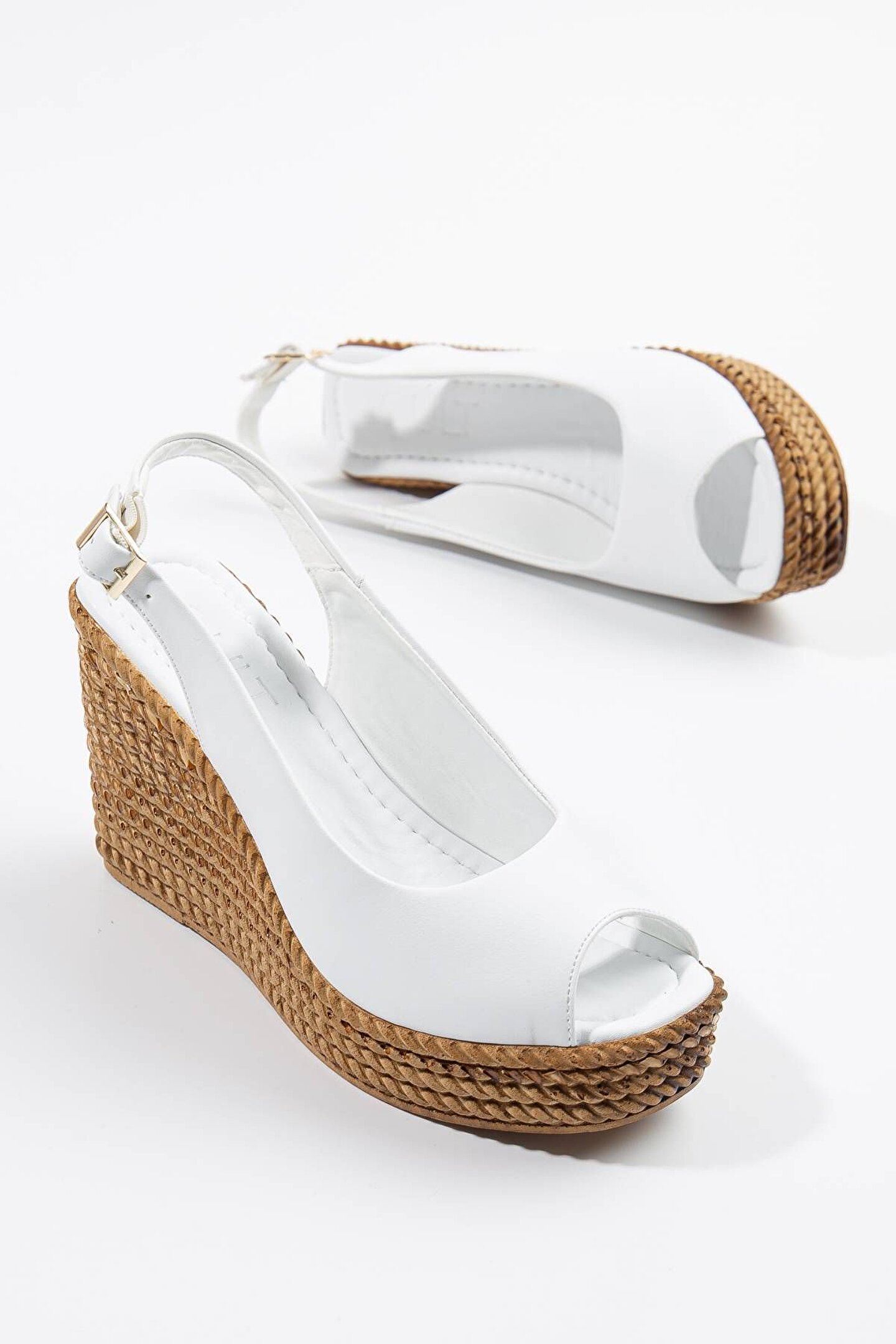 GULT Kadın Dolgu Topuklu Klasik Sandalet Beyaz