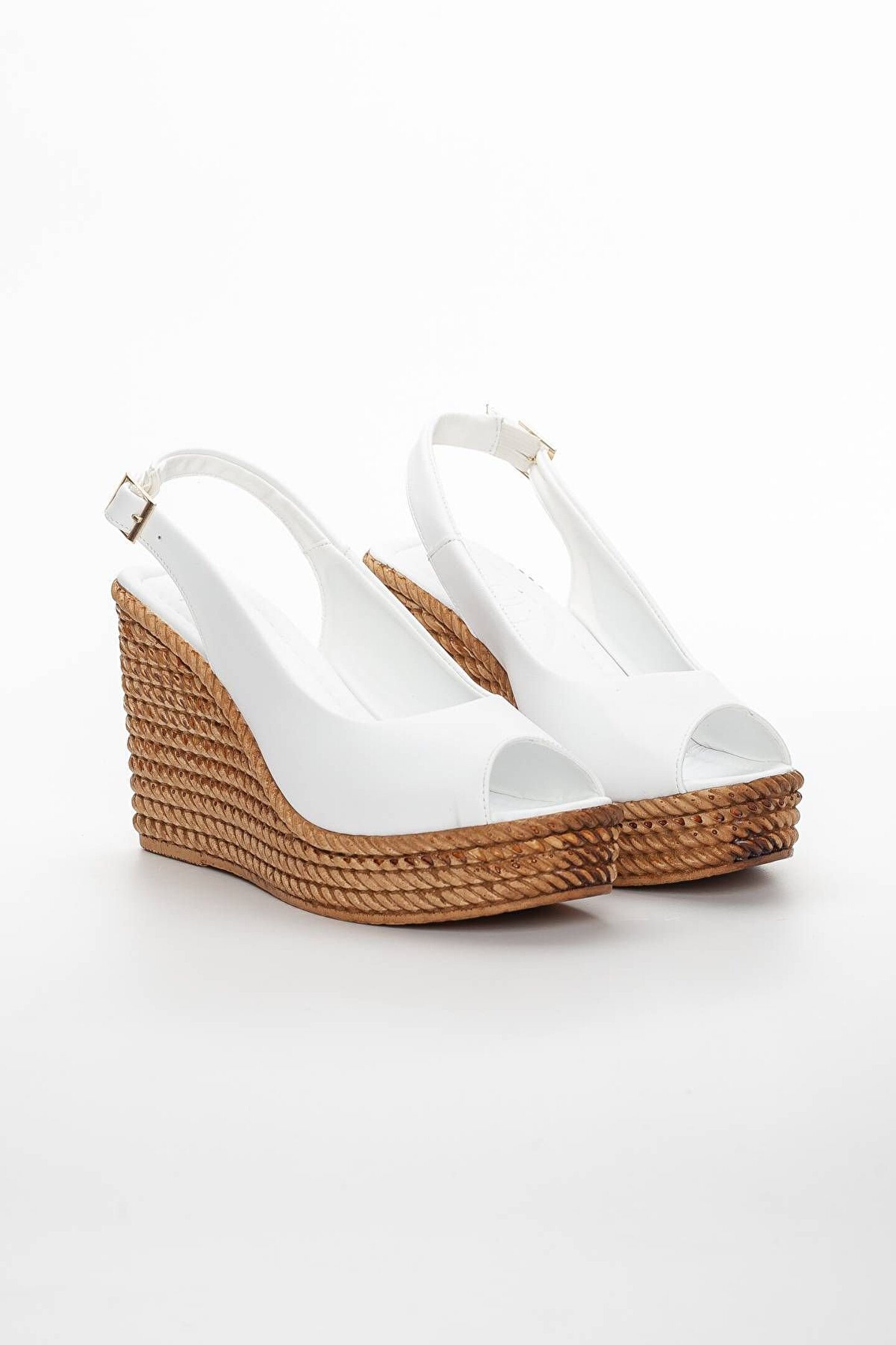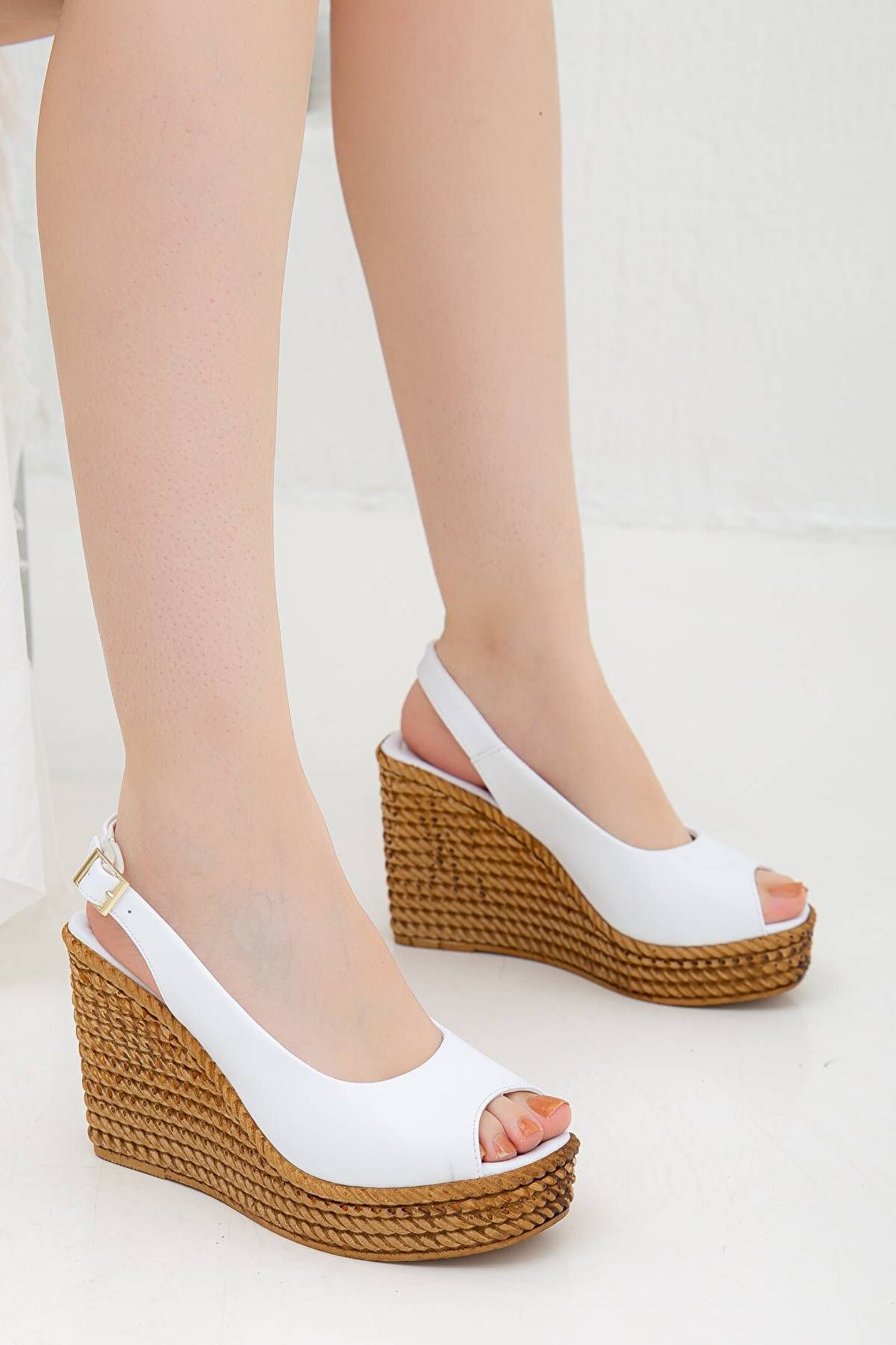 GULT Kadın Dolgu Topuklu Klasik Sandalet Beyaz