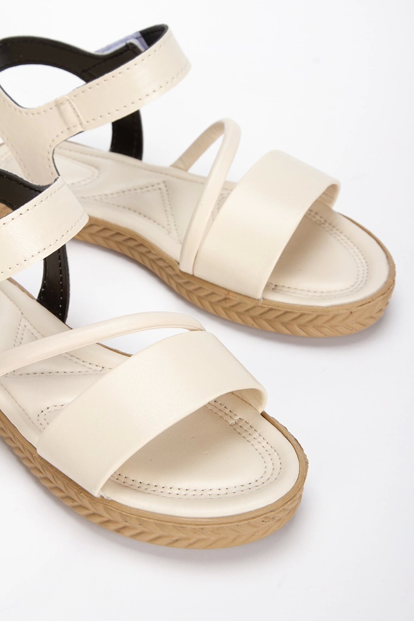 GULT Kadın Düz Kısa Taban Uygun Sandalet Bej