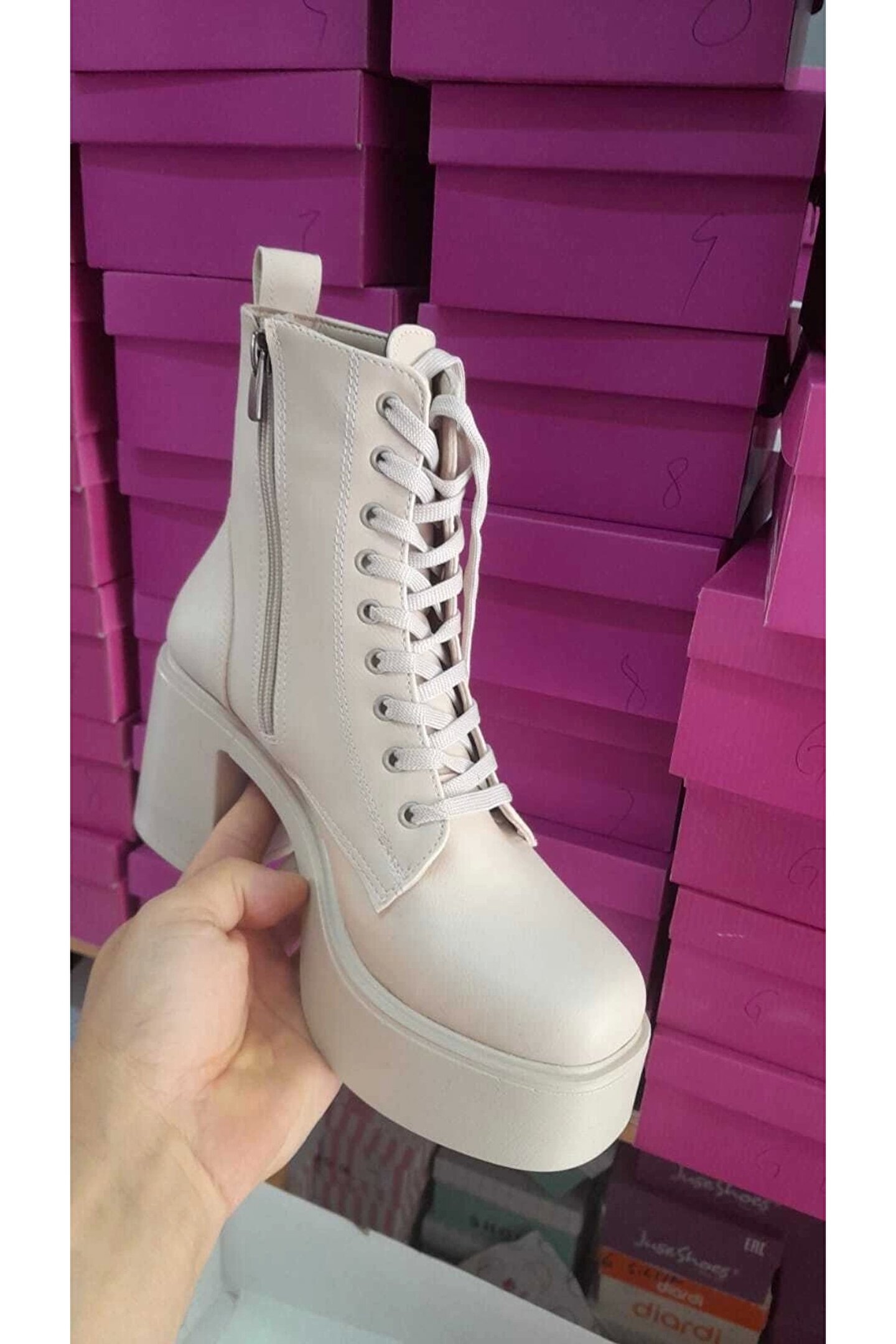Suni deri astar materyali ile konforlu bir iç yapı sunar, uzun süreli kullanımlarda ayaklarınızın rahat etmesini sağlar; İç tabanında da suni deri kullanılarak ayak sağlığınız düşünülerek tasarlanmıştır, böylece her adımda maksimum konfor elde edersiniz; Fermuarlı bağlama şekli sayesinde kolayca giyilip çıkarılabilir ve pratik bir kullanım sunar; Orta topuk boyu (5; 9 cm) ile hem şık hem de rahat bir yürüyüş deneyimi yaşatır; gün boyu konforunuzdan ödün vermezsiniz; Termoplastik taban materyali esneklik ve dayanıklılık sağlayarak her türlü zeminde güvenli adımlar atmanız için idealdir; Günlük kullanım için tasarlanmış olup, casual ortamlarda şıklığınızla fark yaratmanızı sağlar; Bot kalıbı sayesinde ayak yapınıza uyum sağlayarak rahat bir oturuş sunarken, suni deri detaylarıyla estetik bir görünüm kazandırır; Kalın topuklu tasarım, dengeli ve stabil bir yürüyüş deneyimi vaat ederken düz deseniyle s;