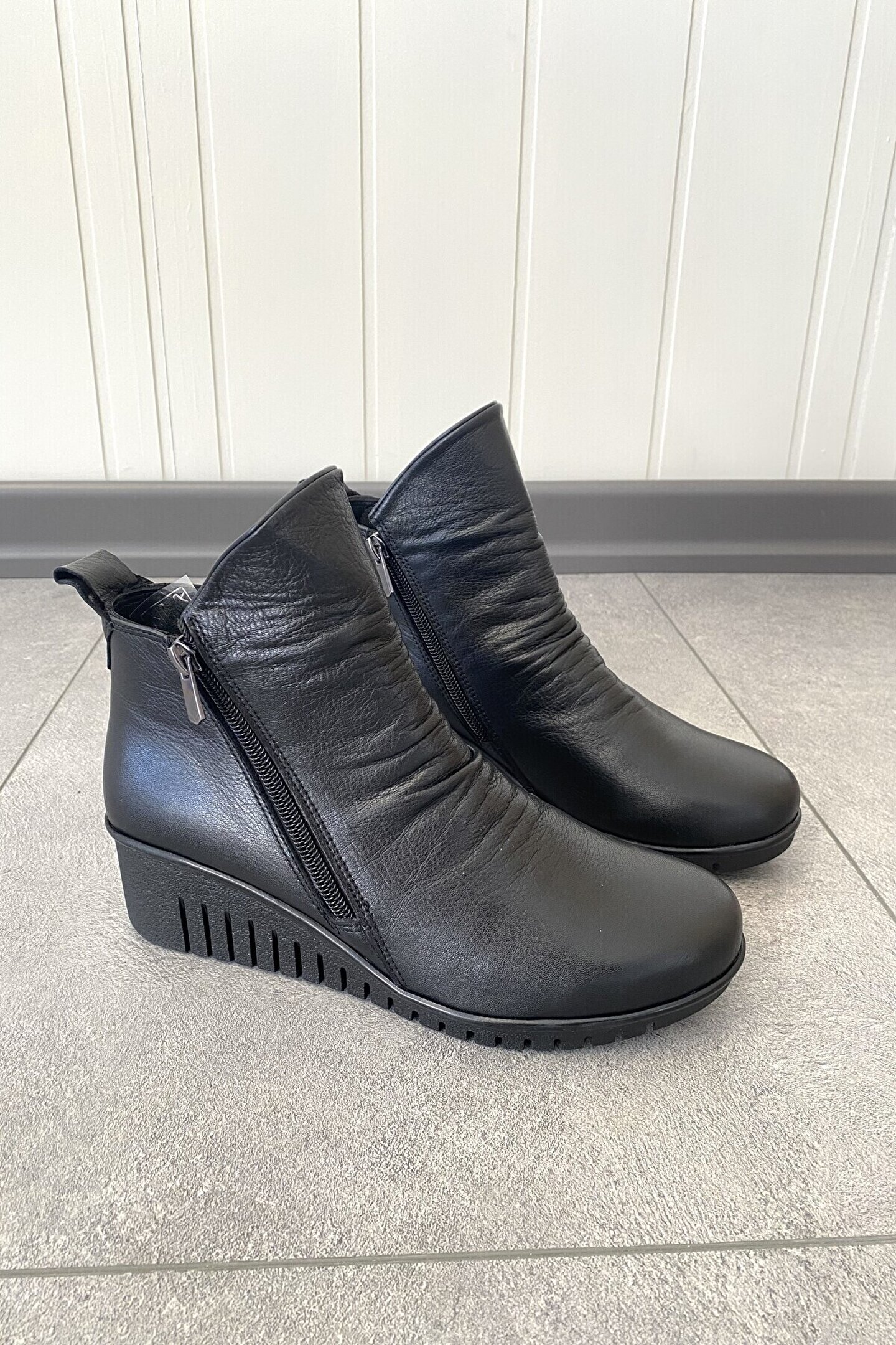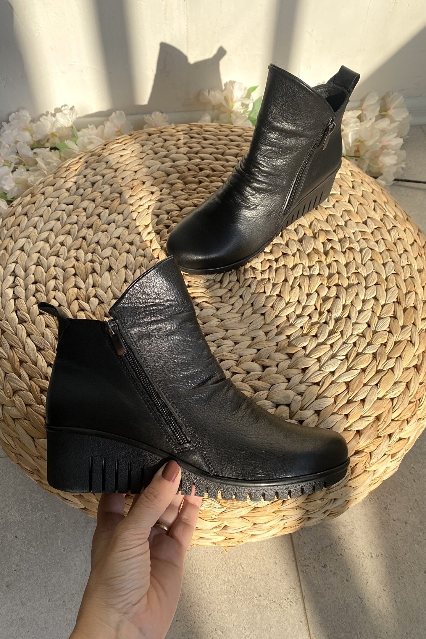 - Hakiki deri iç taban materyali ile ayak sağlığınız düşünülerek tasarlanmıştır, uzun süreli kullanımlarda bile konfor sunar.; ; - Termoplastik taban materyali sayesinde esneklik ve dayanıklılık bir arada; her adımınızda maksimum destek sağlar.; ; - Fusped özelliği ile ayak yapınıza özel uyum sağlayarak rahat bir yürüyüş deneyimi sunar.; ; - Cool & Comfort persona ile hem şıklığı hem de rahatlığı günlük kullanımınıza entegre eder.; ; - Fermuarlı bağlama şekli pratik giyip çıkarma imkanı verirken, botun ayağınıza tam oturmasını sağlar.; ; - Soğuk havaya dayanıklı kumaş teknolojisi ile kış aylarında bile ayaklarınız sıcak kalır ve konforunuzdan ödün vermezsiniz.; ; - Ortopedik taban desteği ile ayak sağlığınız ön planda tutulur; gün boyu rahatlık hissi verir.; ; - Casual/günlük ortamlar için ideal olan bu botlar, her türlü günlük aktivitelerinizde yanınızda olacak.; ; - Tekstil astar materyali nefes alabilir yapısıyla ayaklarınızın gün boyu ferah kalmasını sağlar.; ; - Yuvarlak burun tipi ile modern ve zamansız bir görünüm kazandırırken, bot kalıbı rahatlık ve şıklığı birleştirir.; ; - Dolgu topuklu tasarım hem;