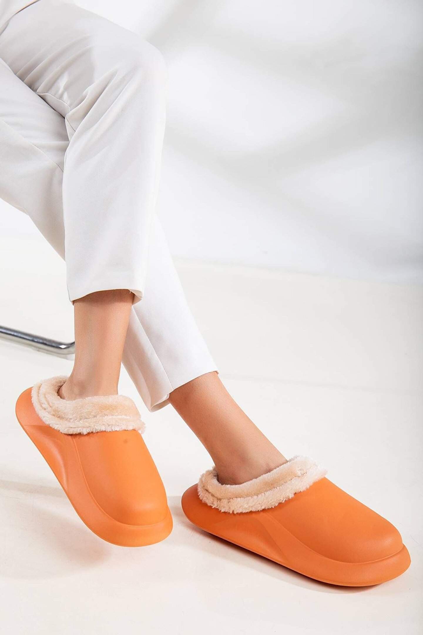 GULT Kadın Içi Kürklü Kışlık Sıcak Terlik Turuncu