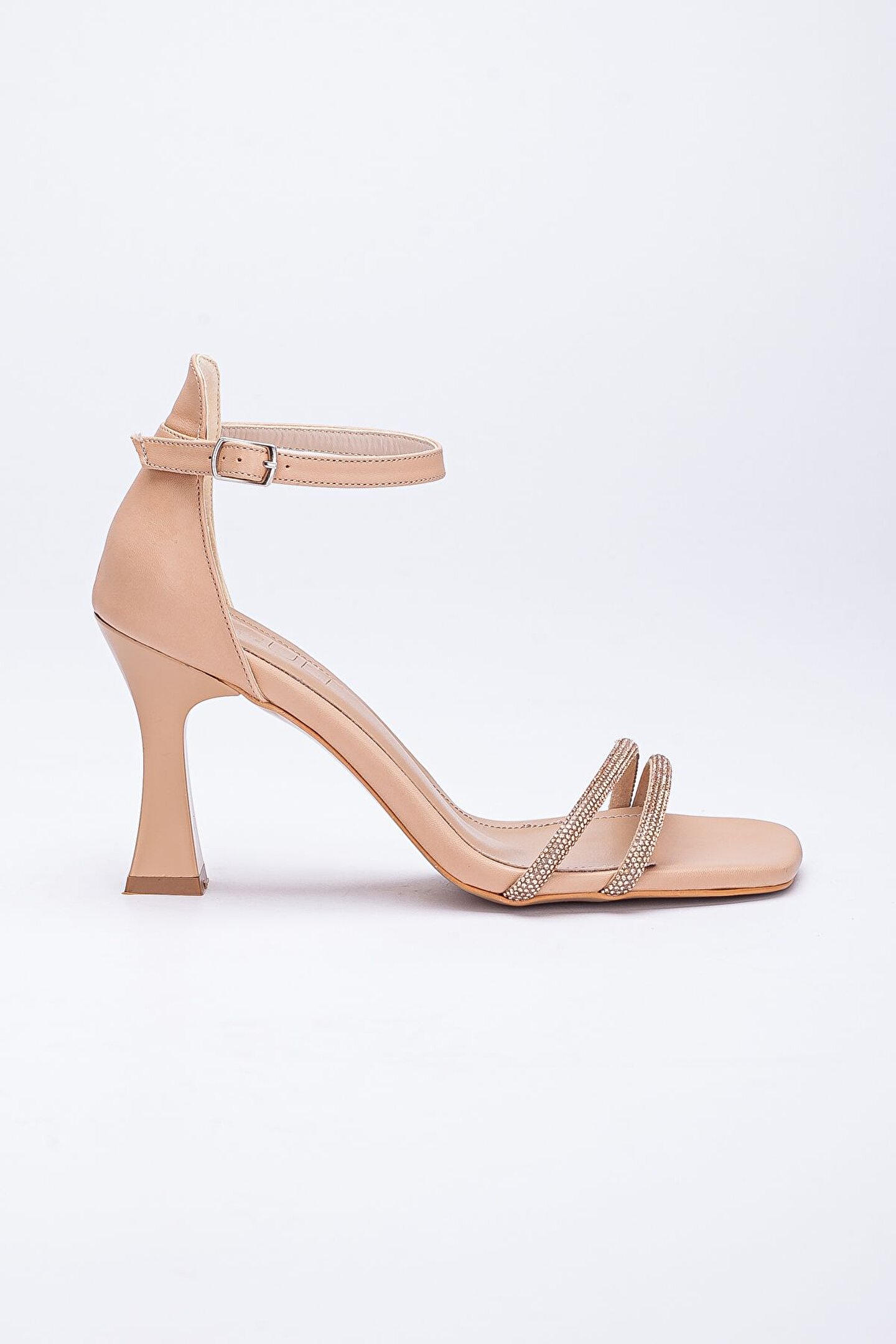 GULT Kadın Ince Topuklu Arkası Kapalı Yazlık Taş Işlemeli Ayakkabı Nude