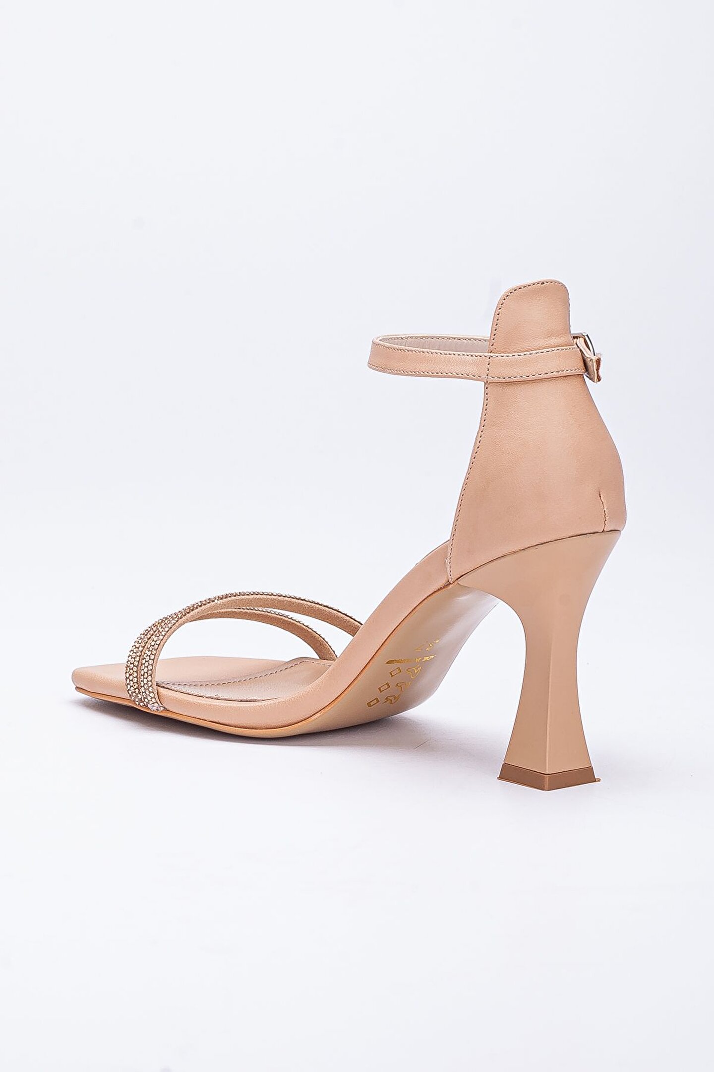 GULT Kadın Ince Topuklu Arkası Kapalı Yazlık Taş Işlemeli Ayakkabı Nude
