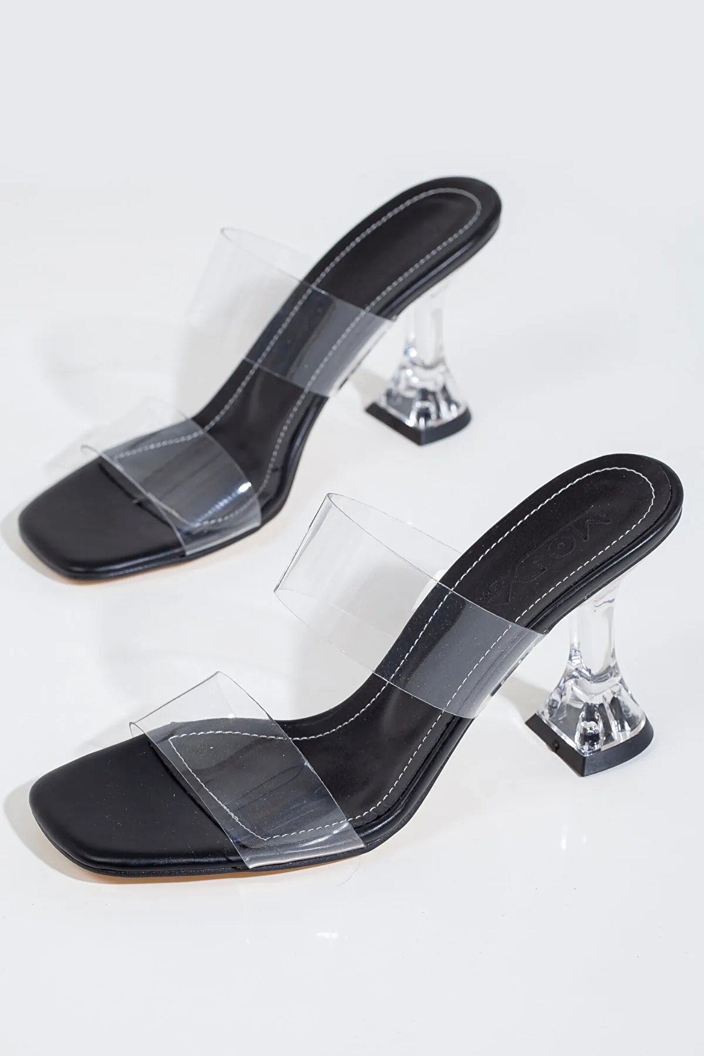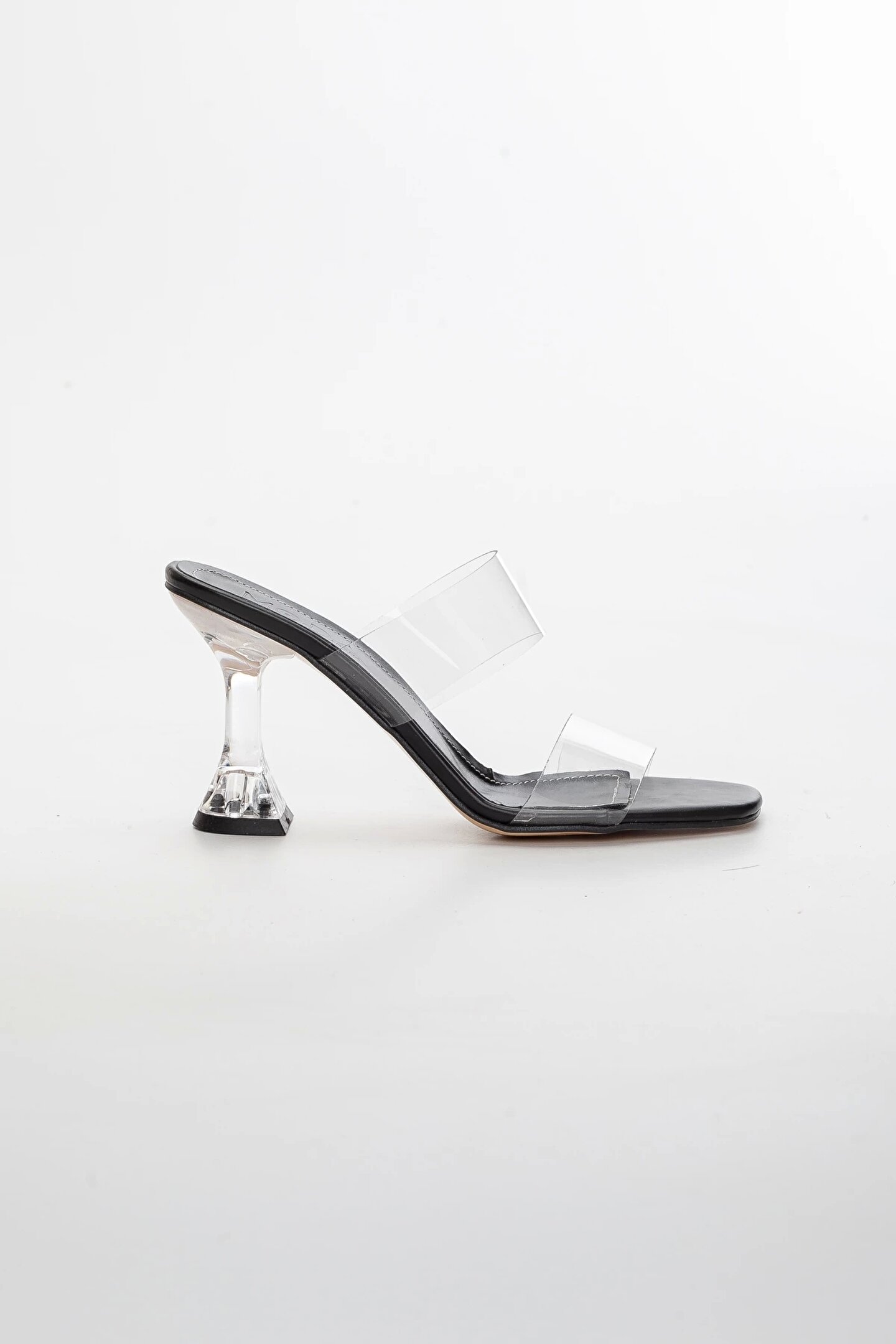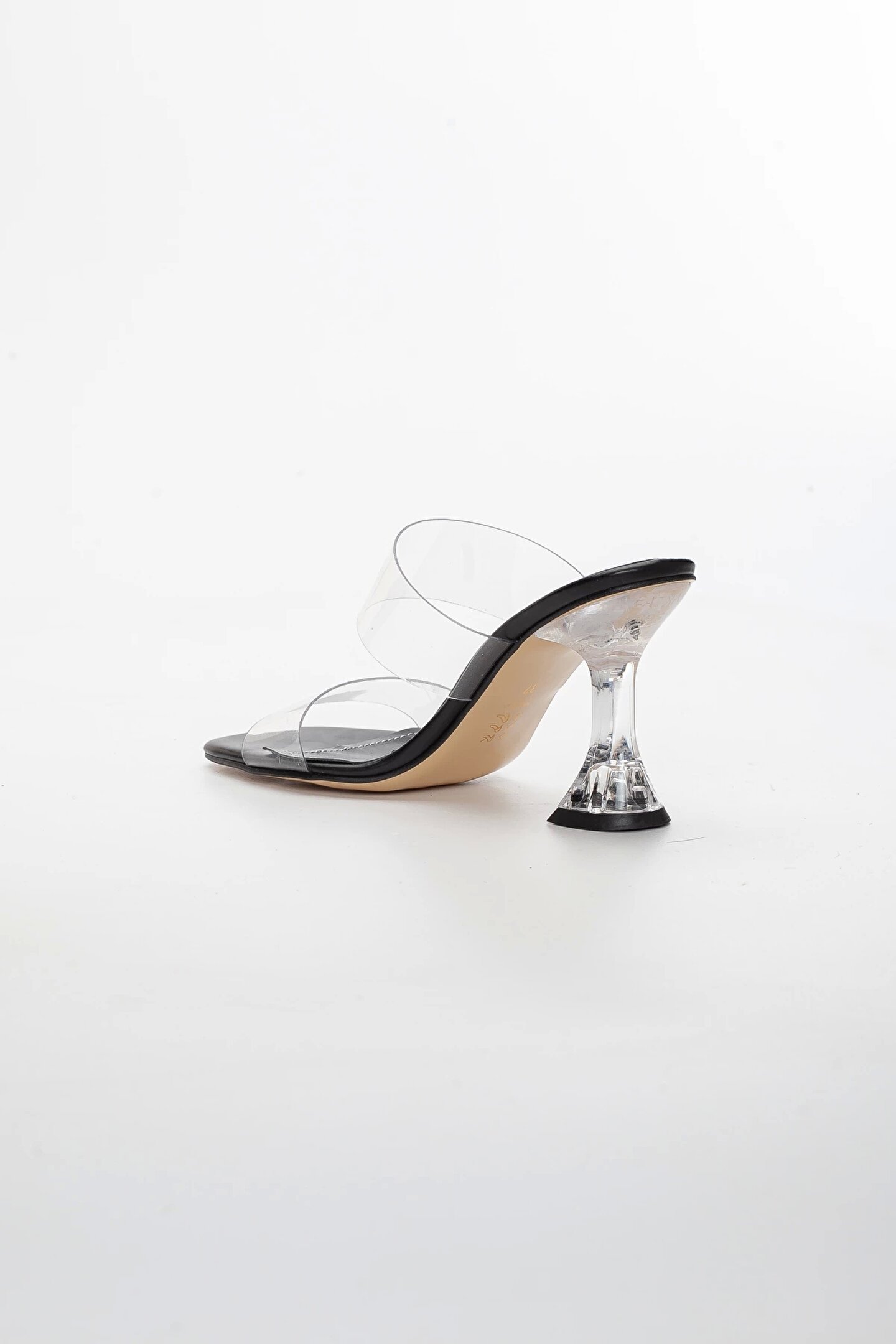 GULT Kadın Ince Topuklu Siyah Şeffaf Terlik