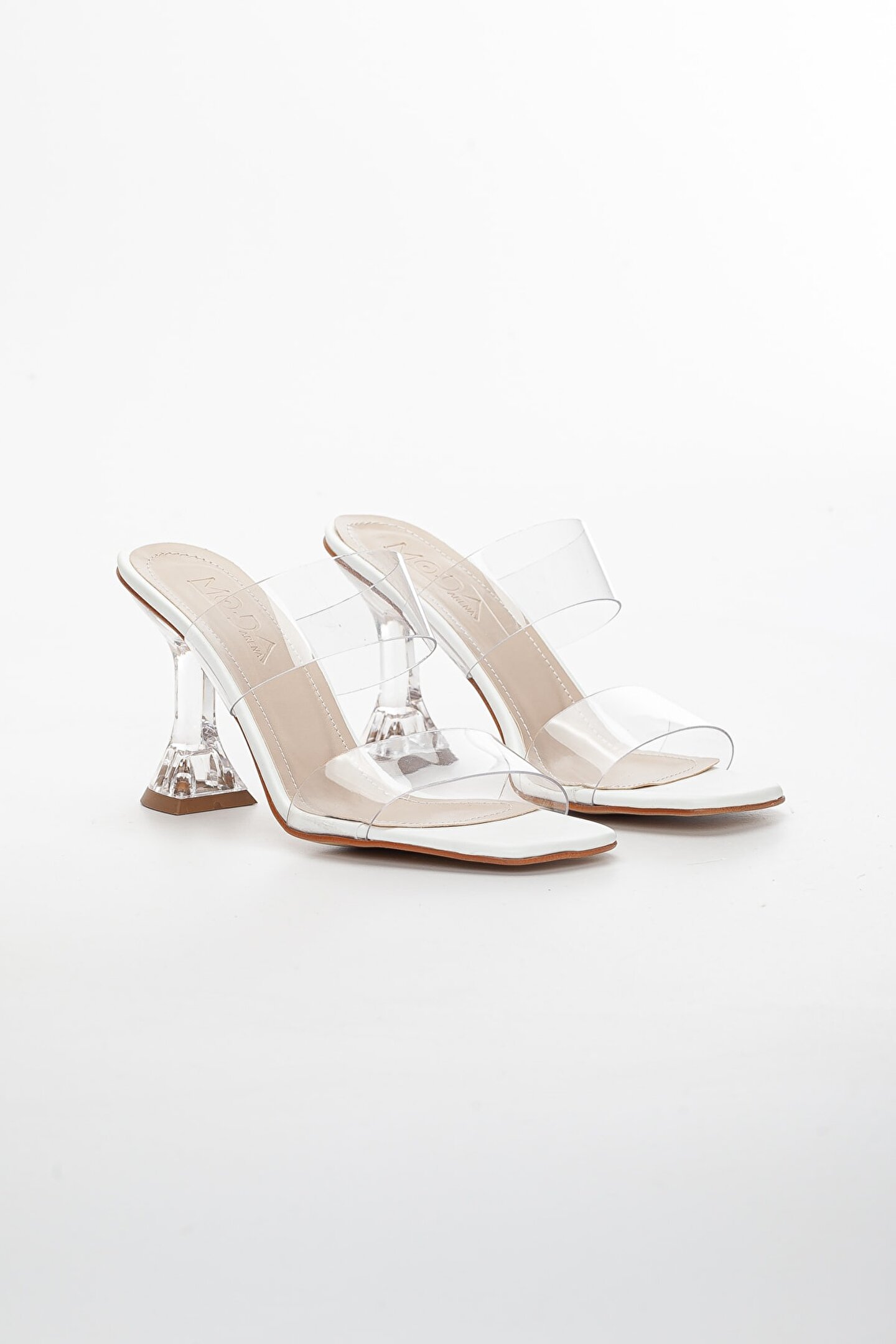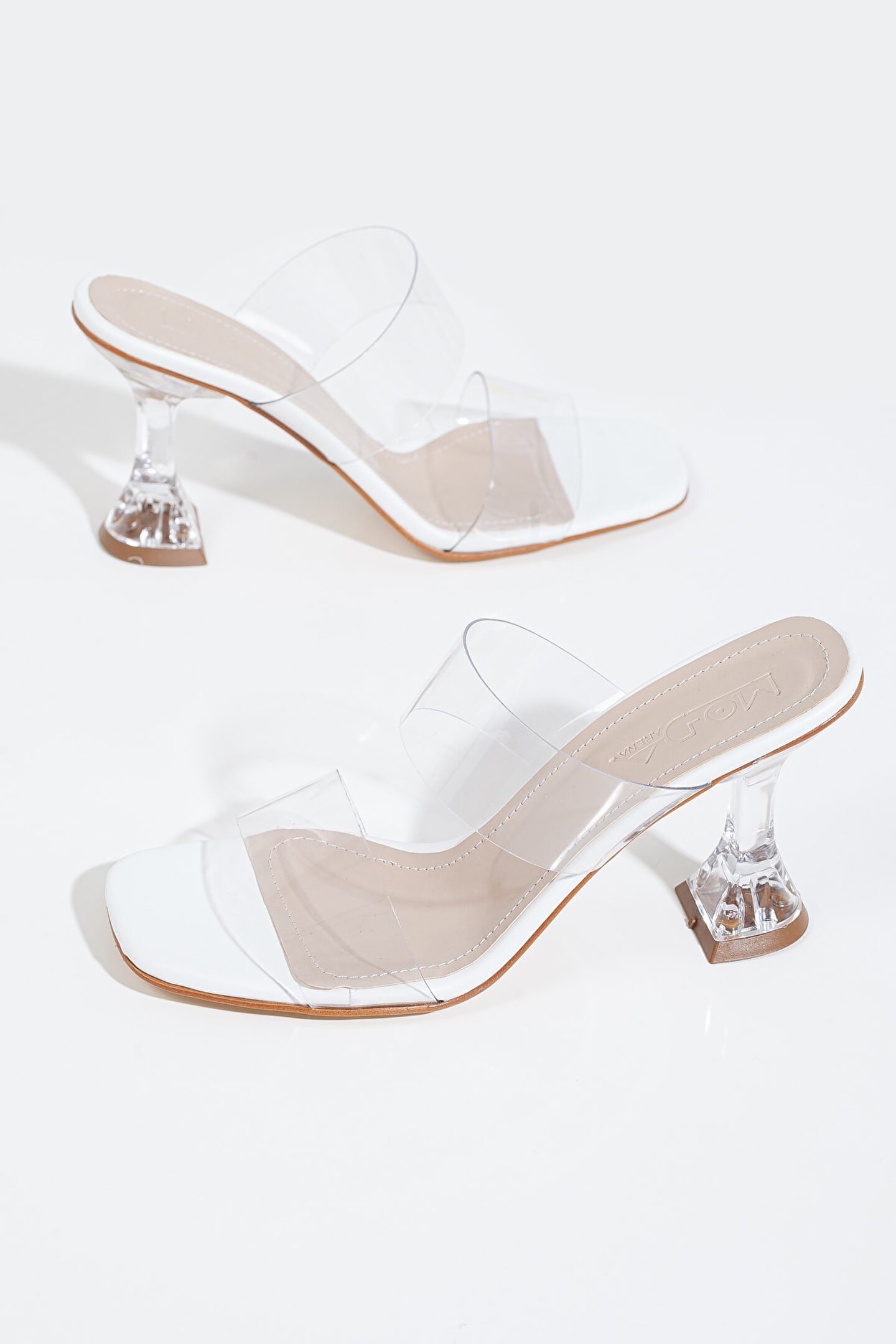 GULT Kadın Ince Topuklu Beyaz Şeffaf Terlik