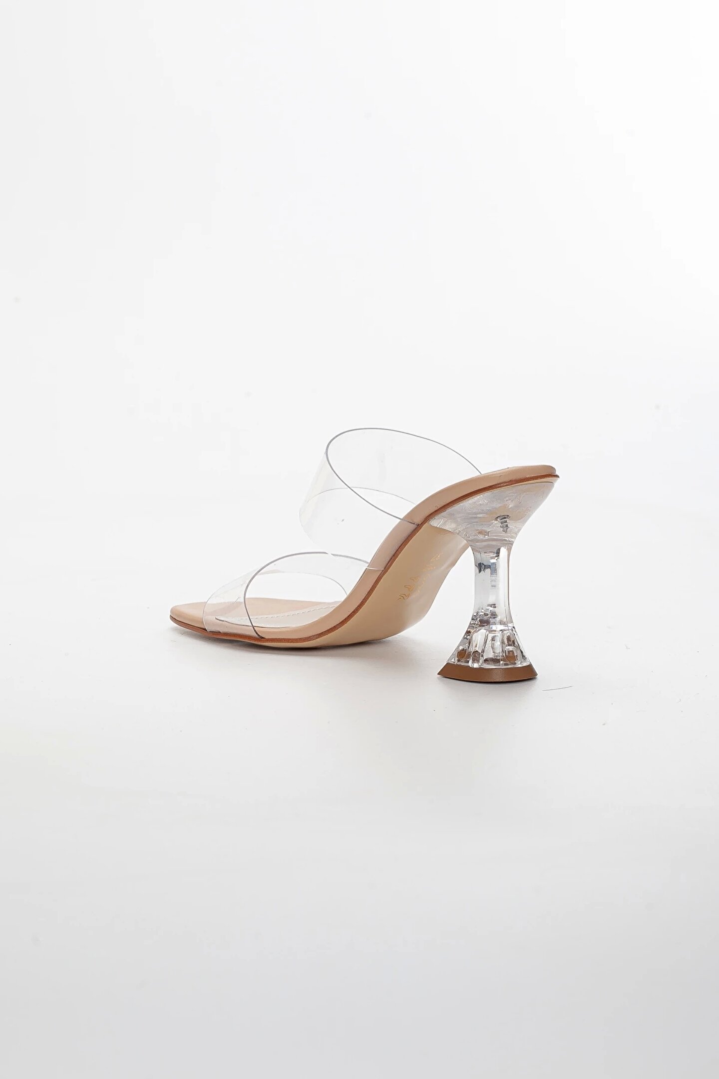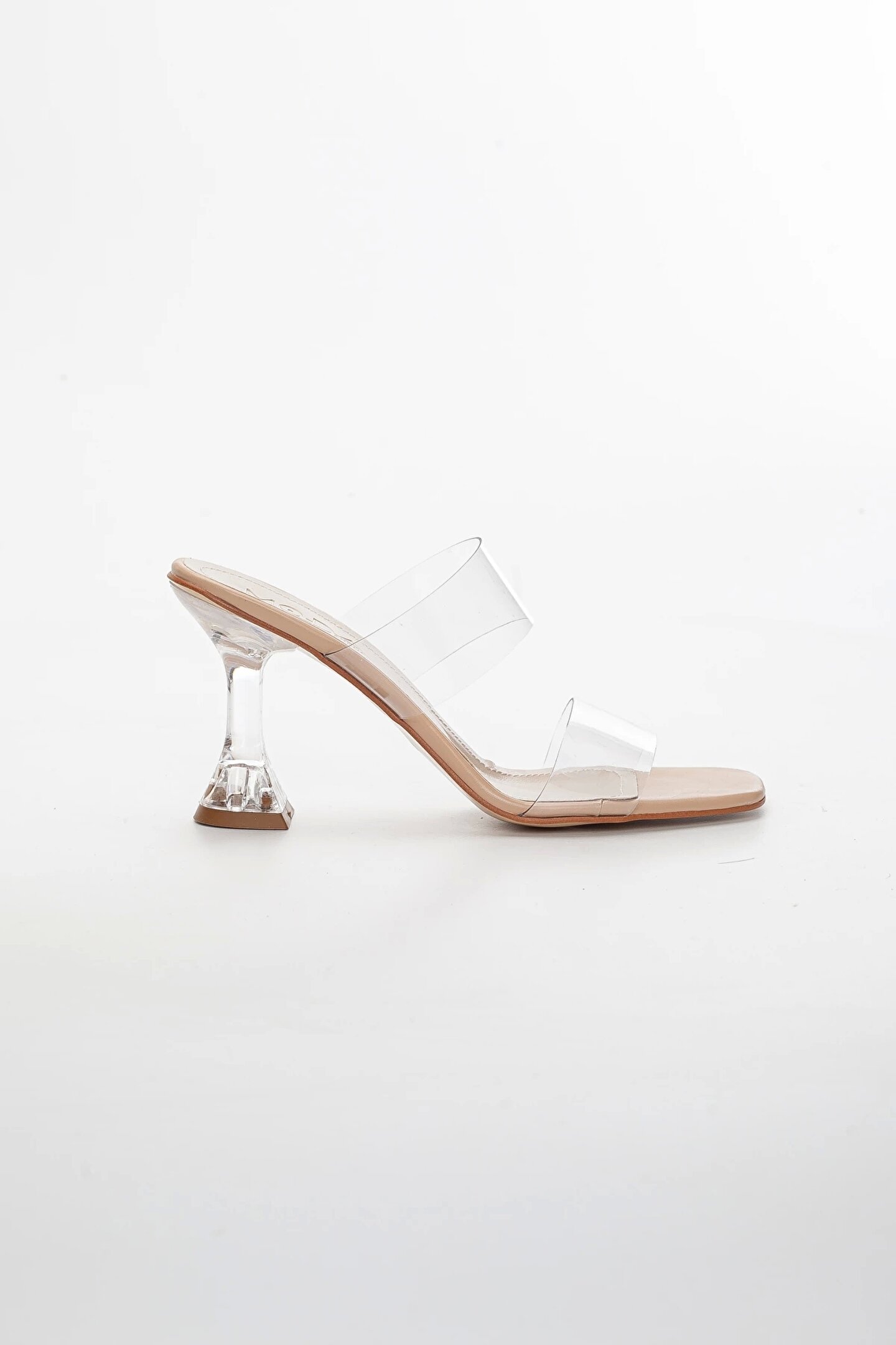 GULT Kadın Ince Topuklu Ten Şeffaf Terlik