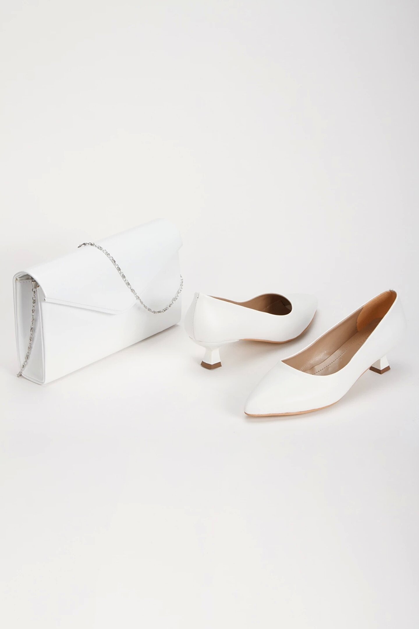 GULT Kadın Stiletto ve Çanta Takımı Beyaz Cilt