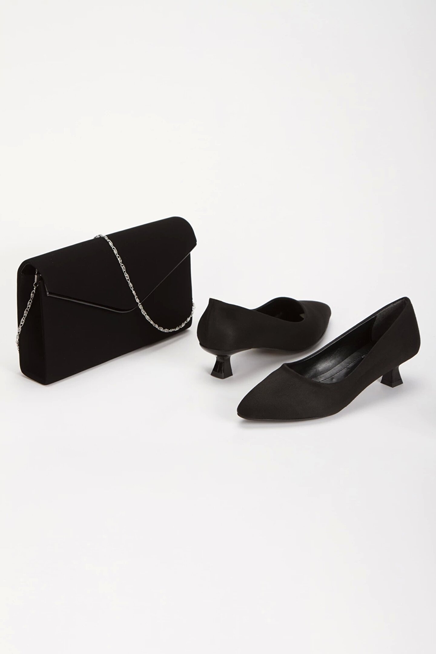 GULT Kadın Stiletto ve Çanta Takımı Siyah Süet