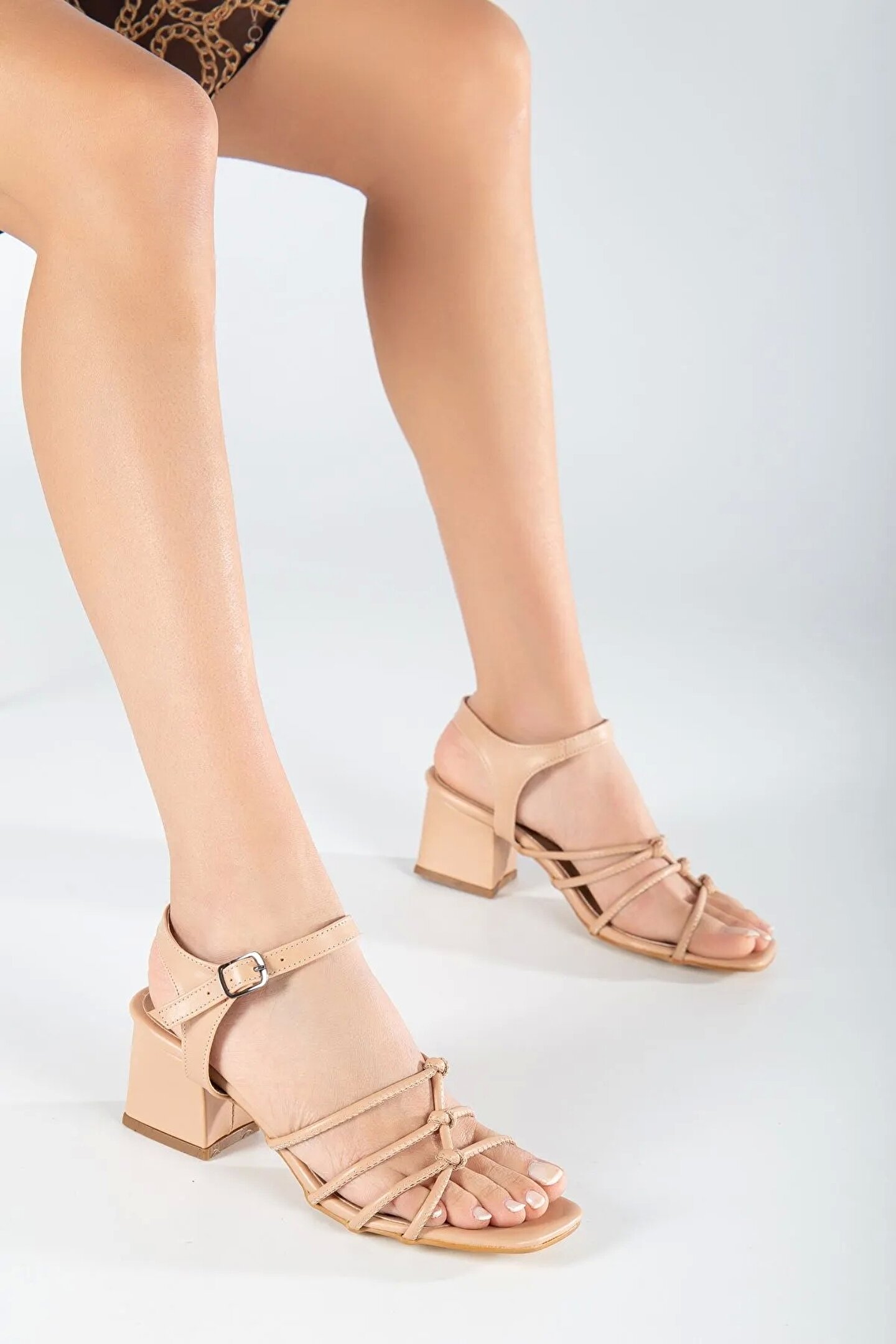 GULT Kadın Kalın Kısa Topuklu Düğüm Biyeli