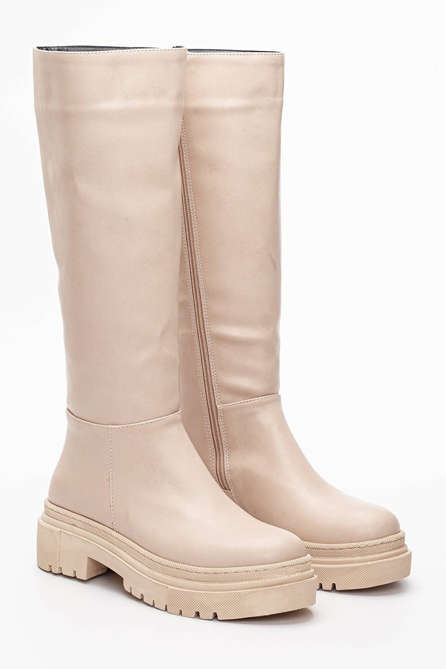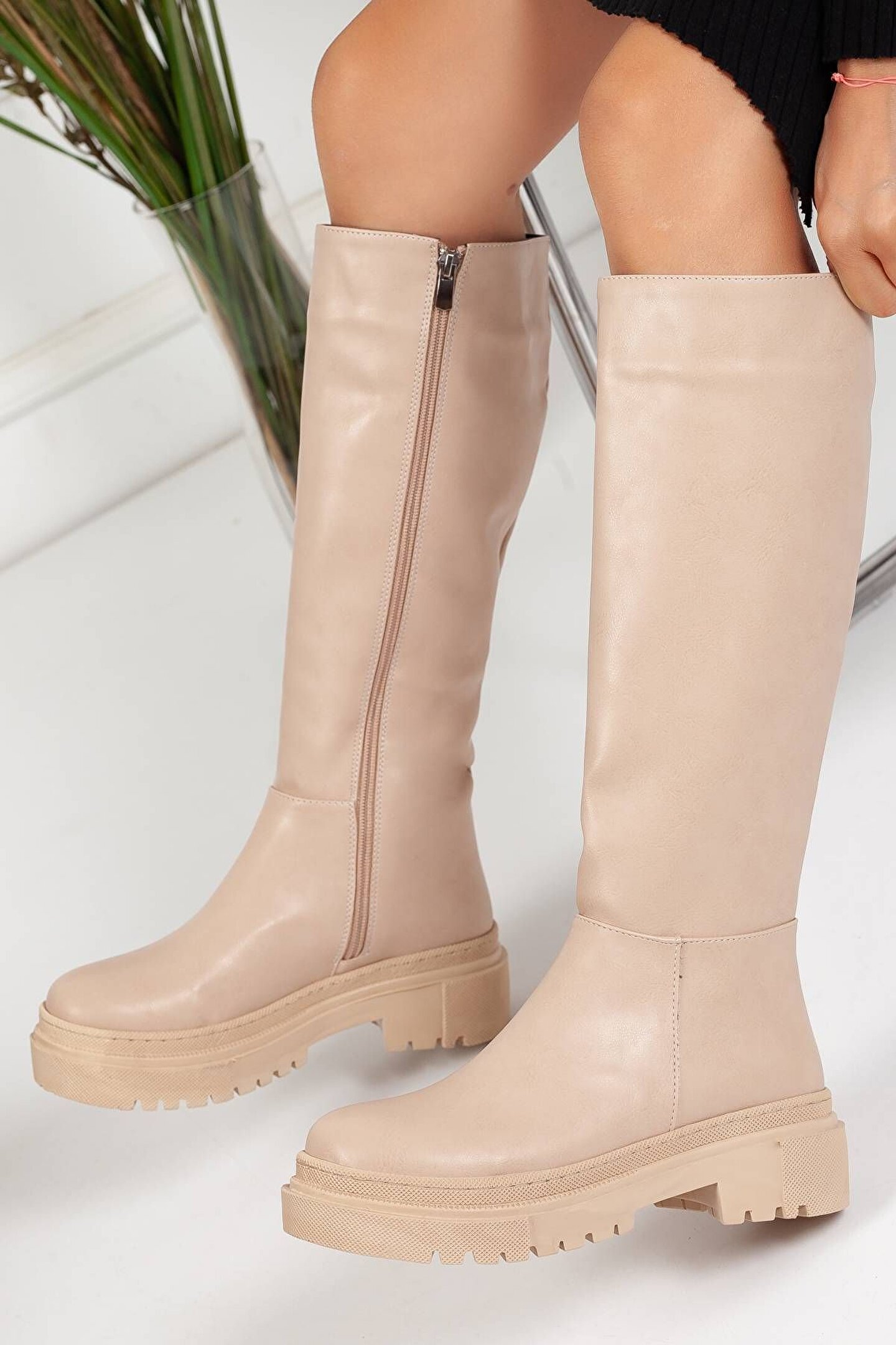 GULT Kadın Kalın Tabanlı Günlük Tarz Nude Renk Çizme