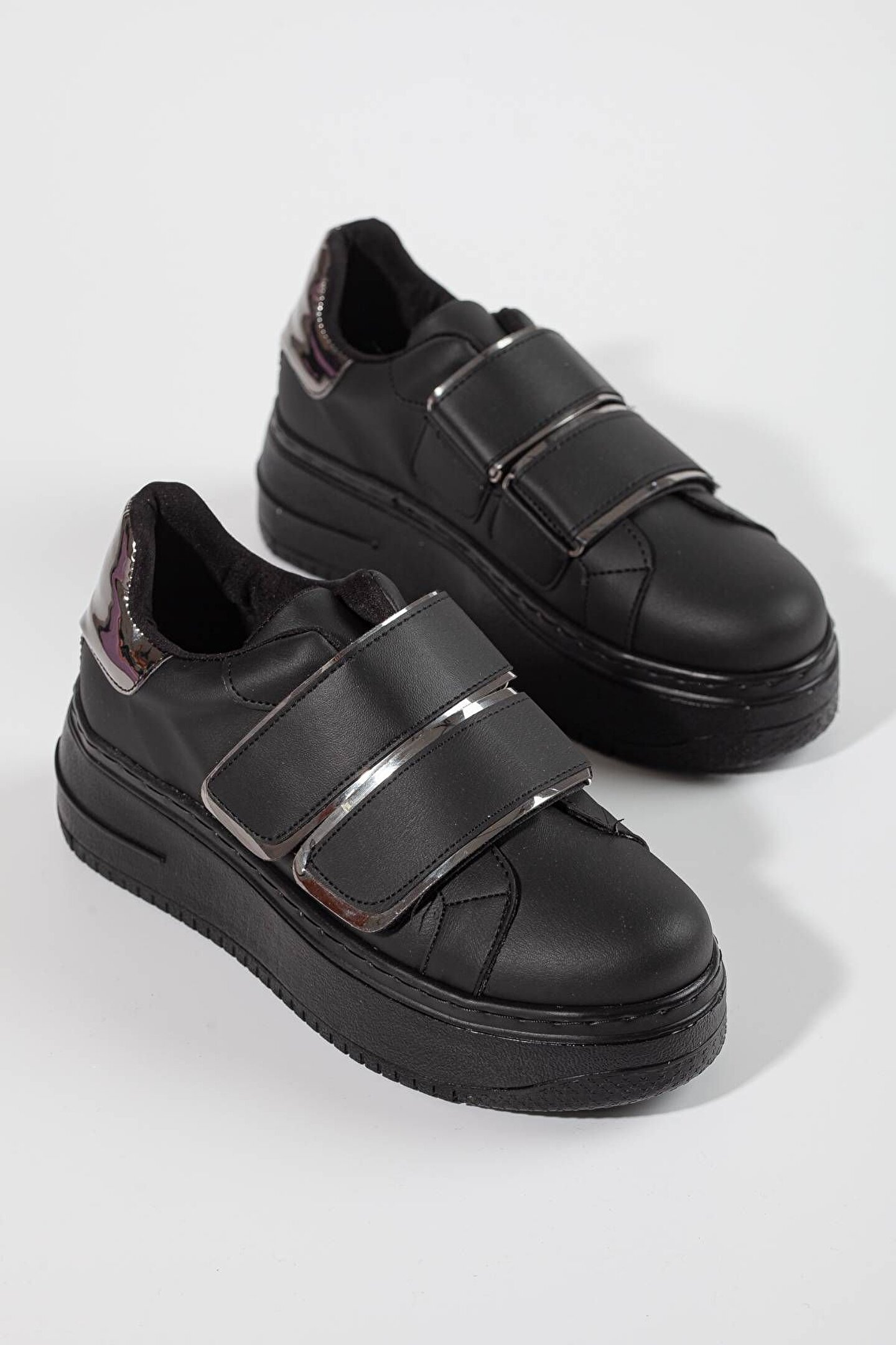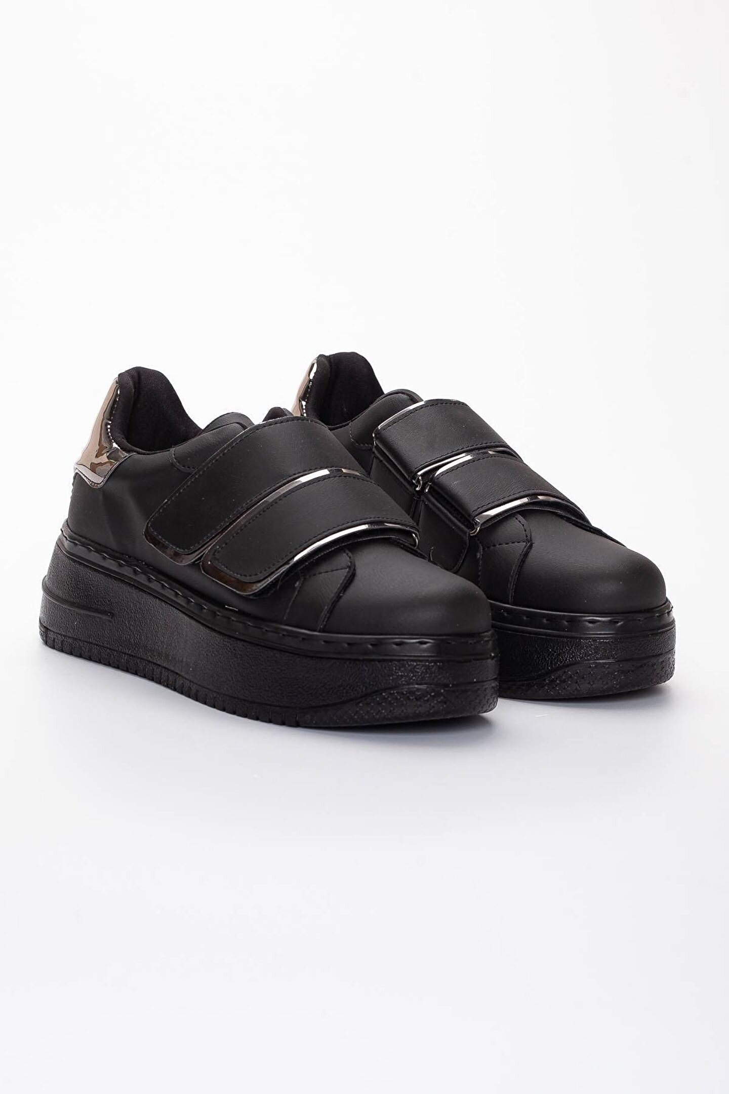 GULT Kadın Kalın Tabanlı Spor Cırt Bantlı Siyah Ayakkabı