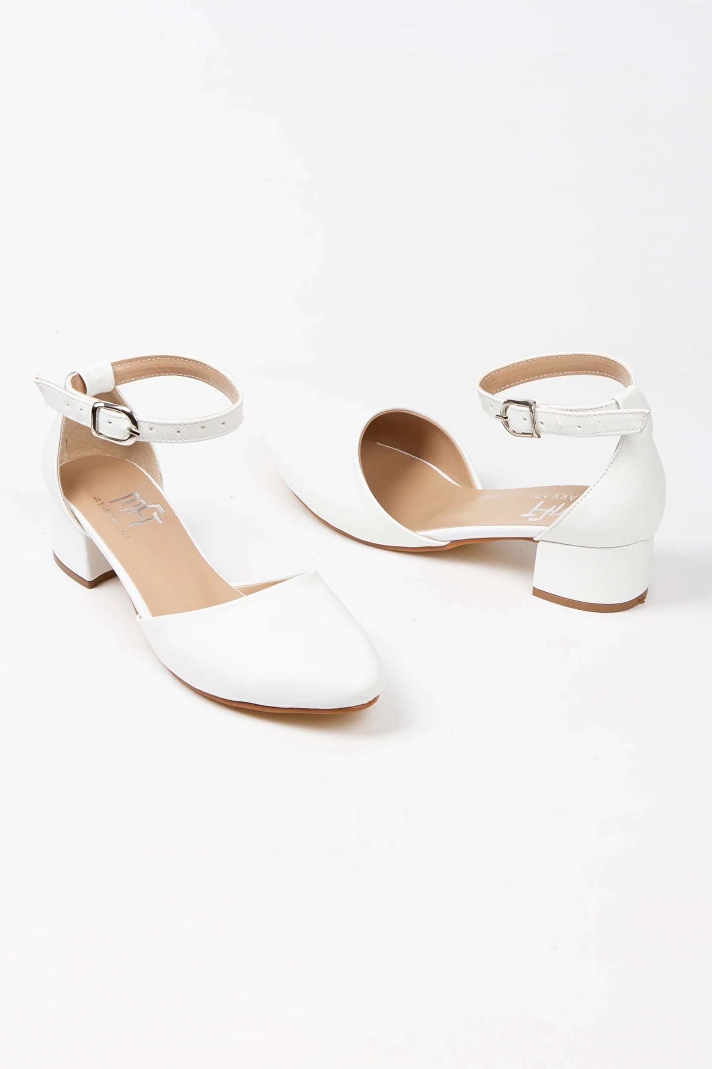 GULT Kadın Karnıyarık Model Kısa Topuklu Ayakkabı Beyaz