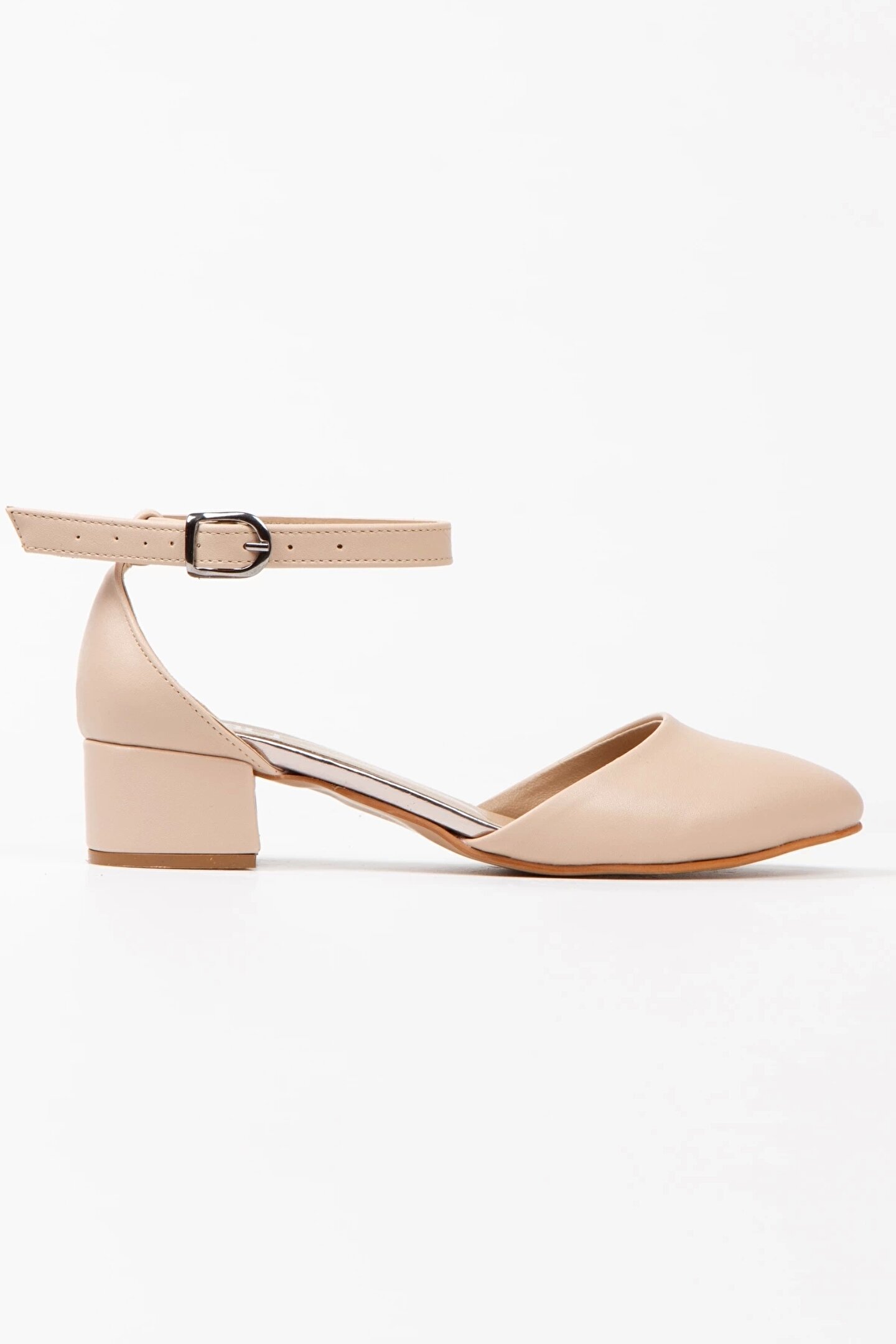 GULT Kadın Karnıyarık Model Kısa Topuklu Ayakkabı Nude