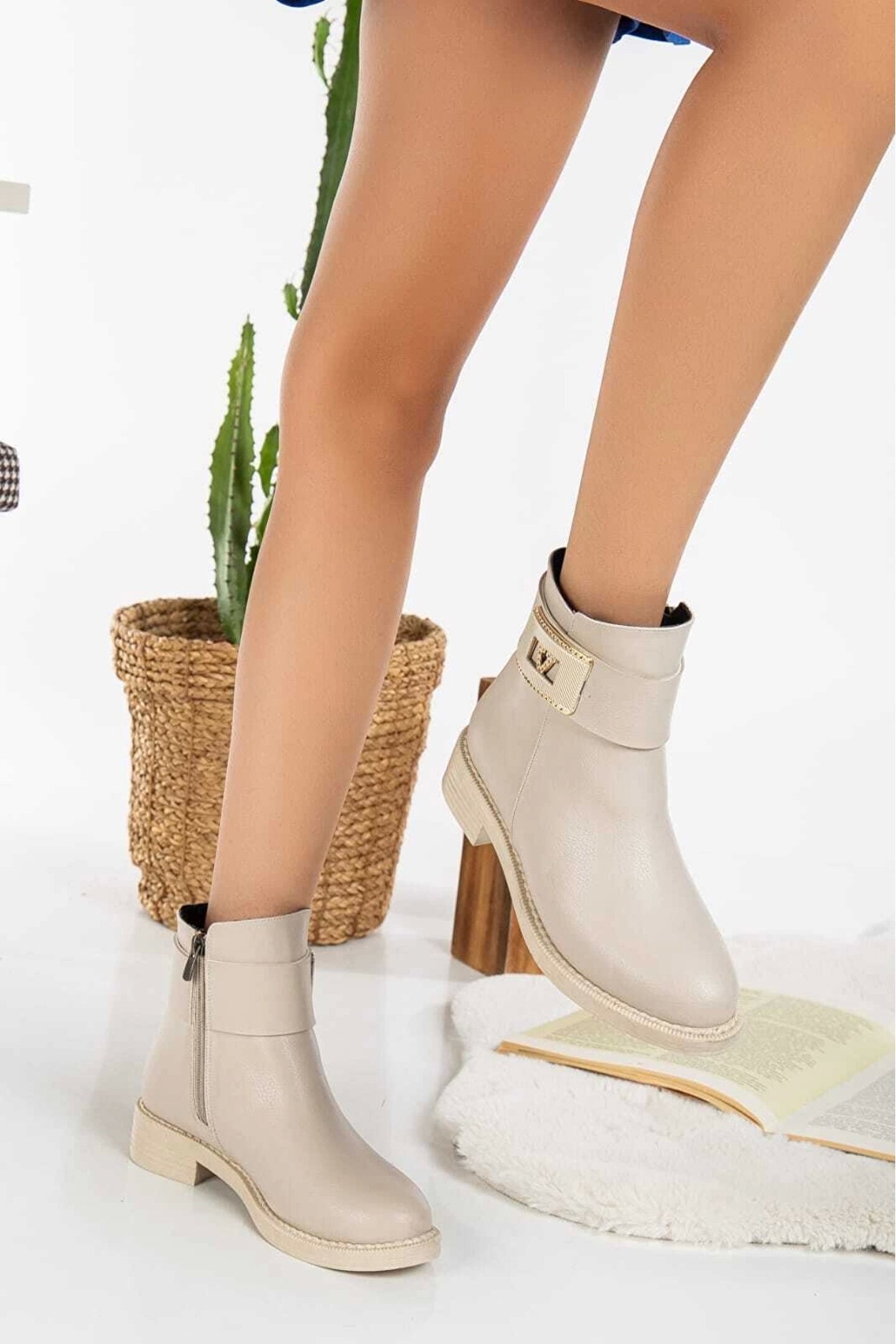 GULT Kadın Kışlık V Tokalı Bot Bej
