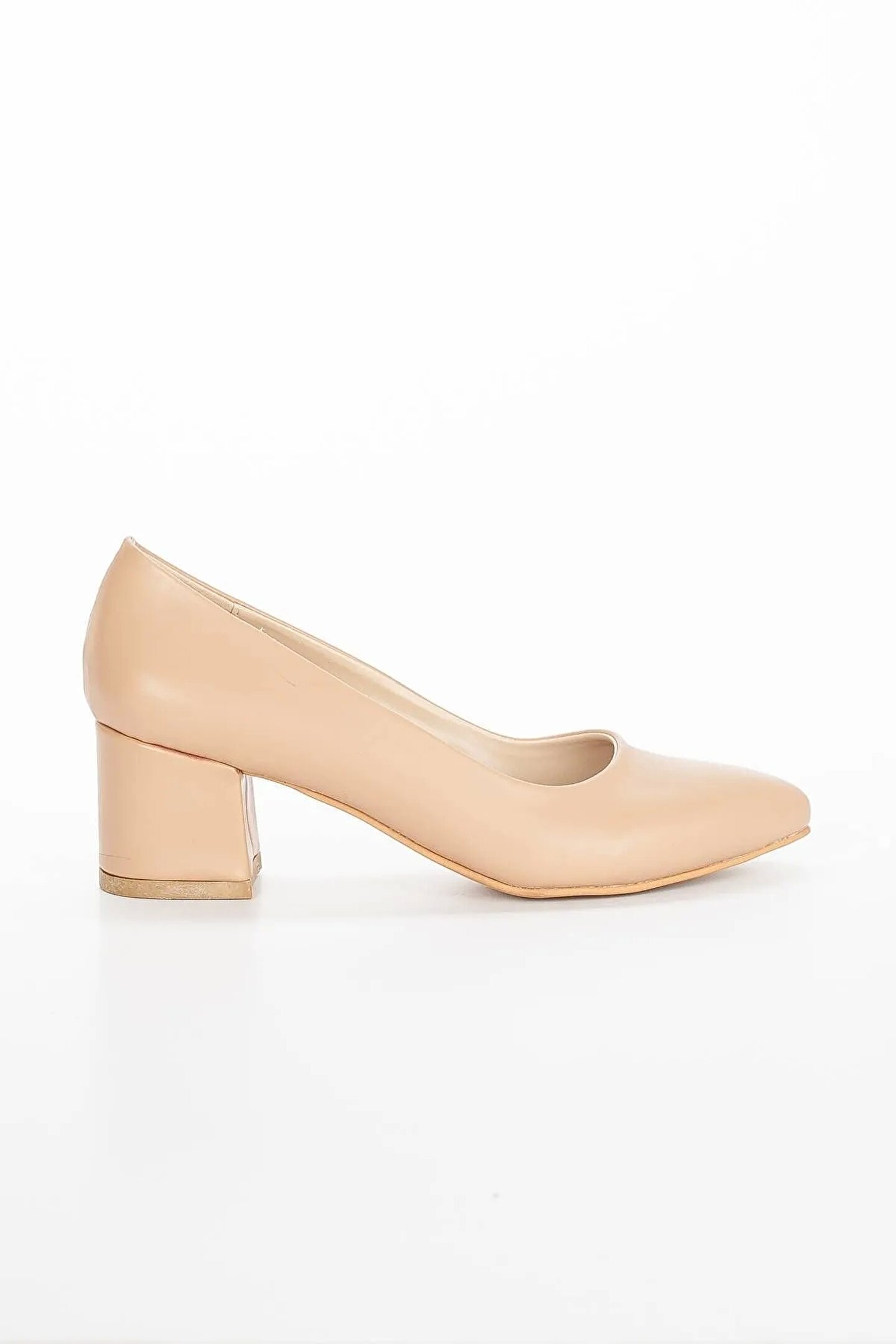 GULT Kadın Klasik Kalın Ökçeli 5 Cm Stiletto Nude