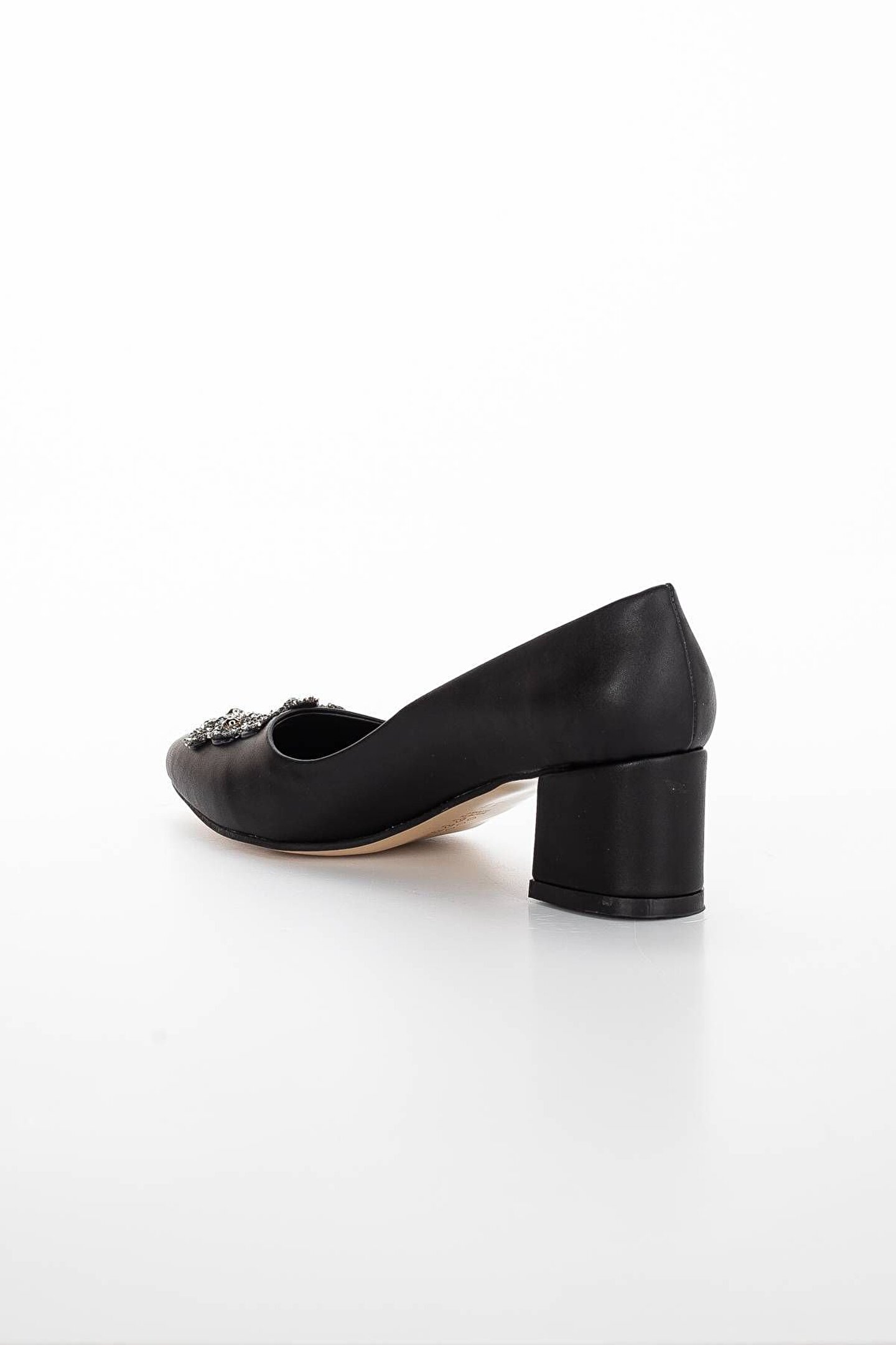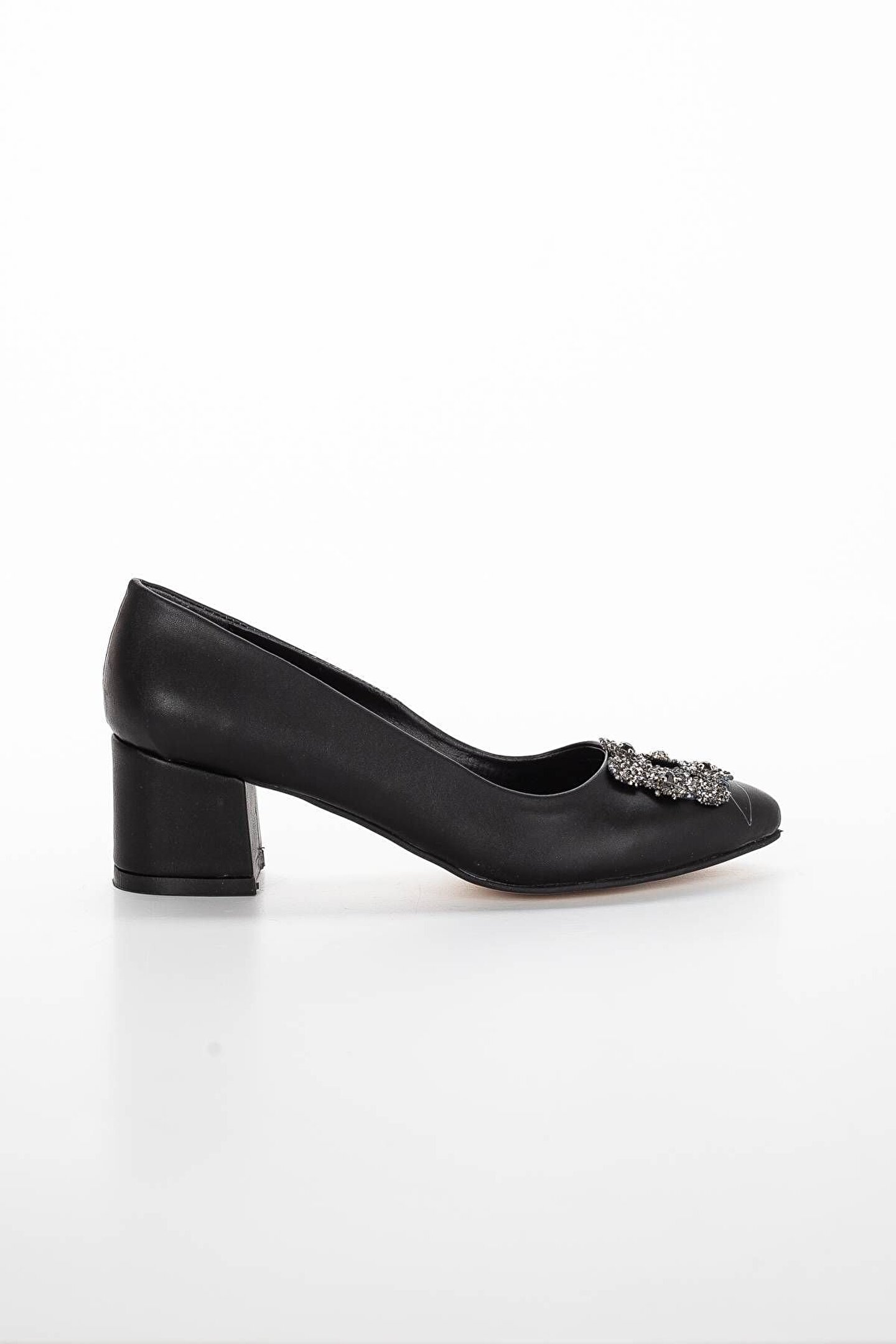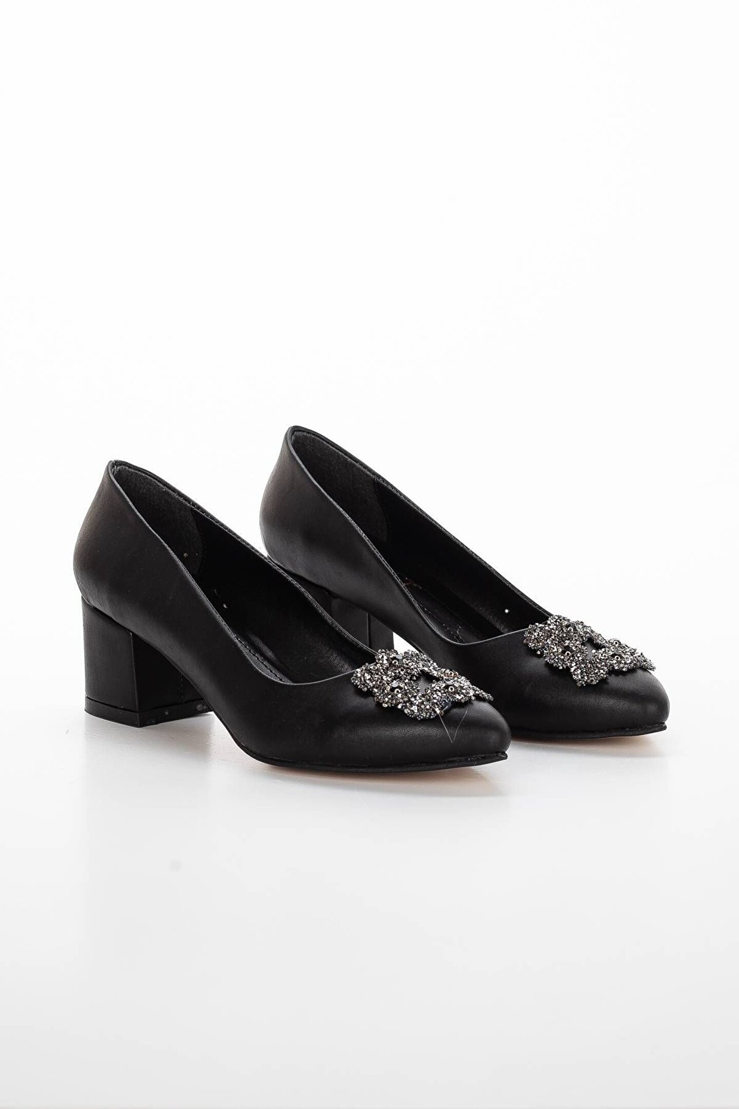 GULT Kadın Klasik Kalın Ökçeli Mat Siyah Taşlı 5 cm Stiletto