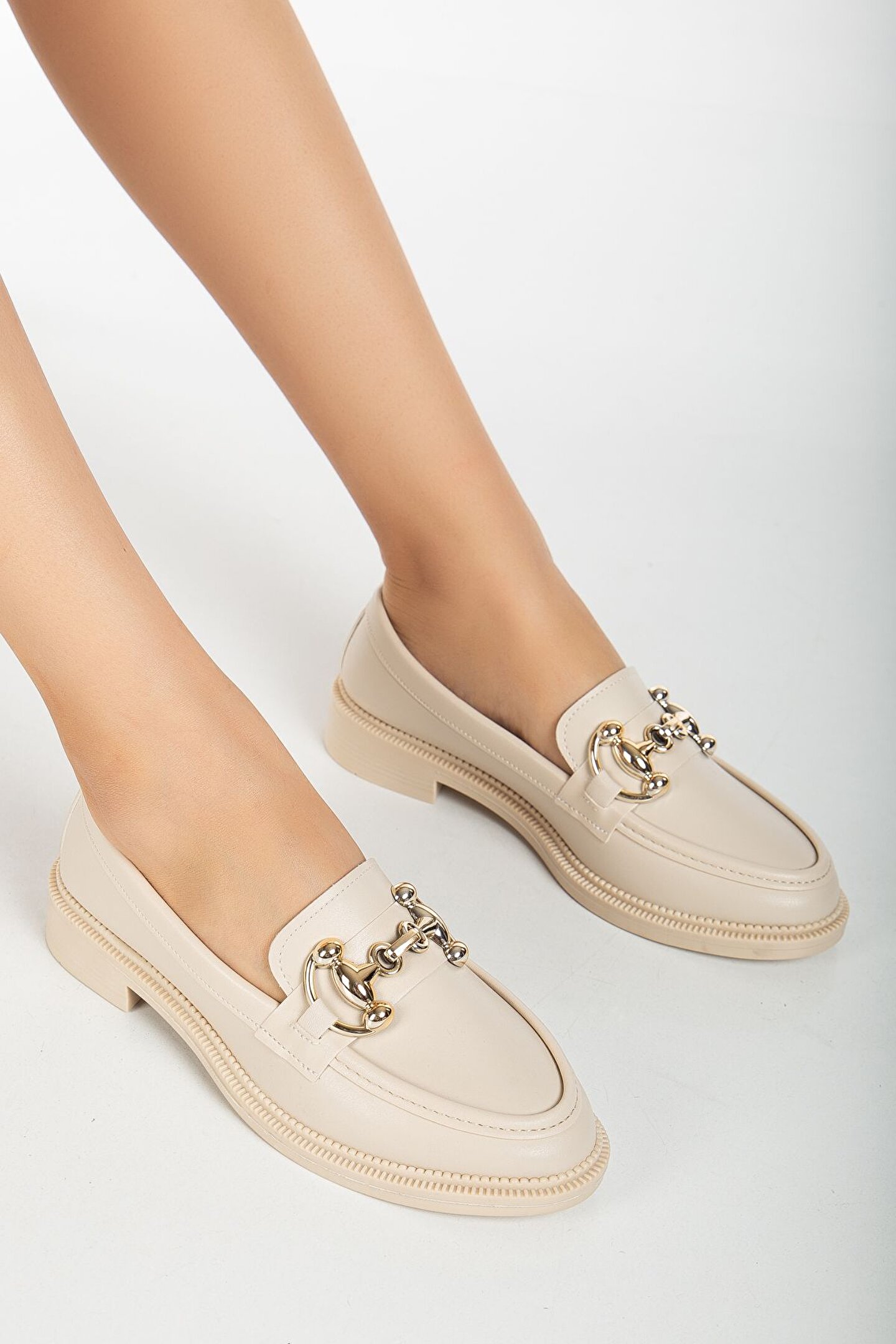 GULT Kadın Metal Detaylı Loafer Babet Nude