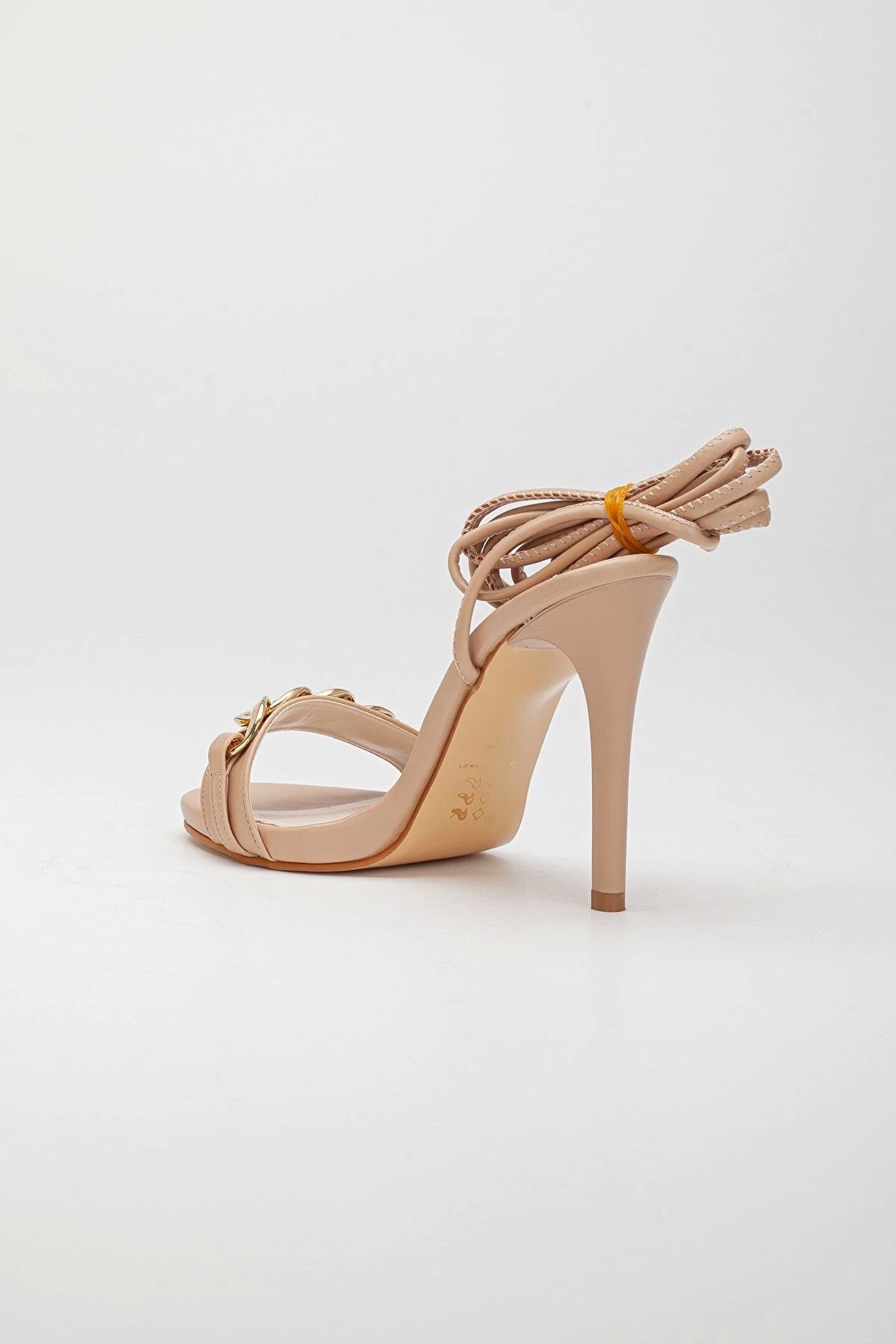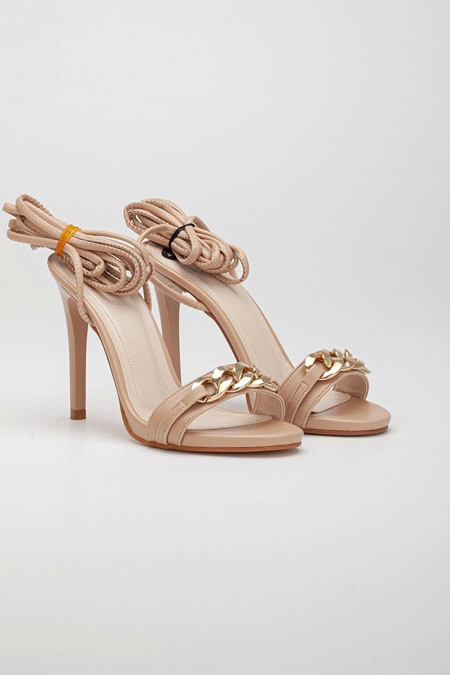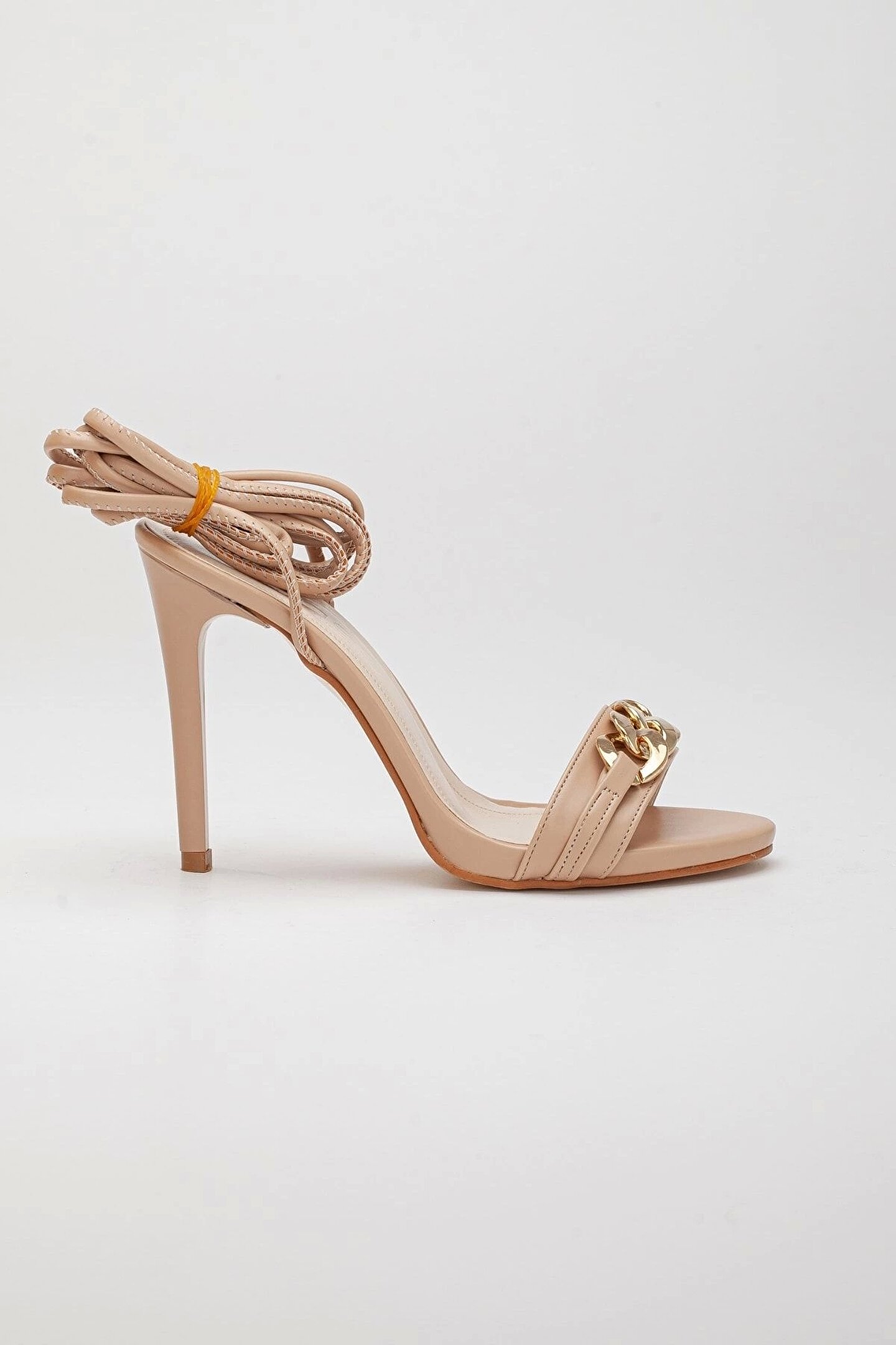GULT Kadın Nude Bağcıklı 10 Cm Ince Topuklu Zincir Tokalı Yazlık Ayakkabı