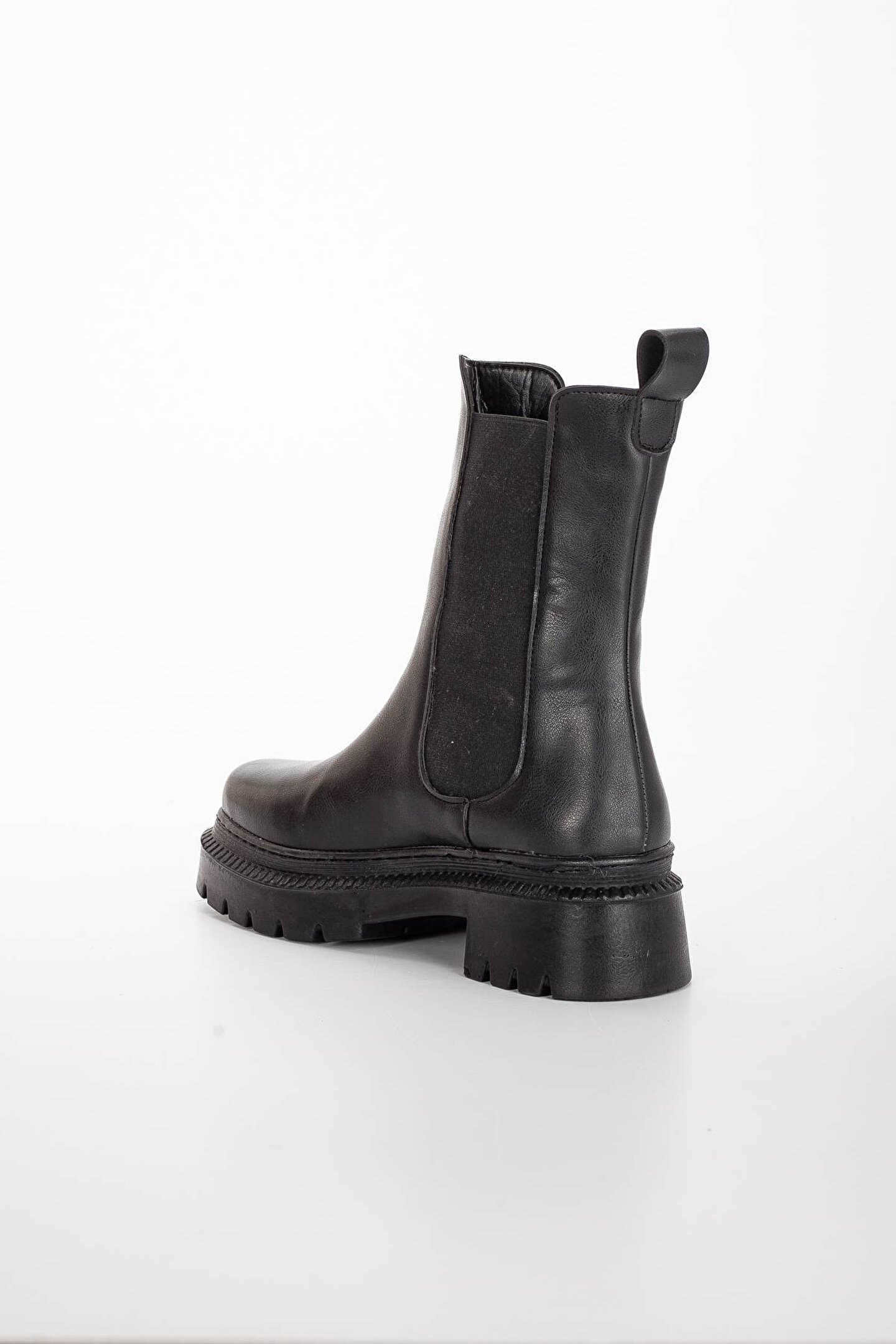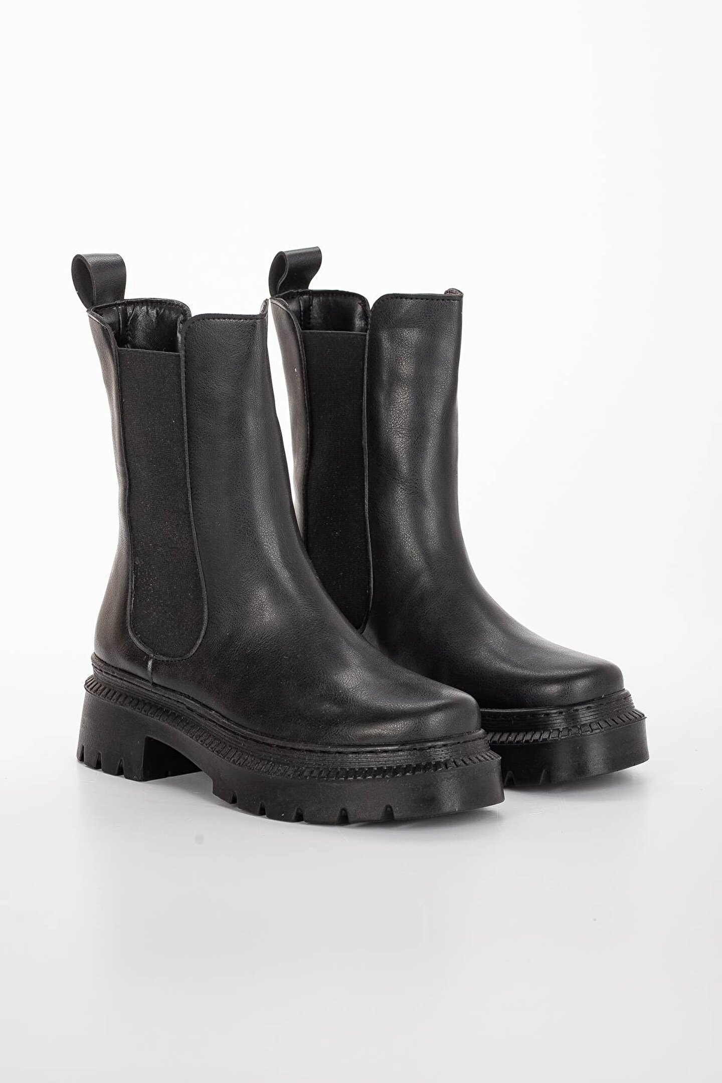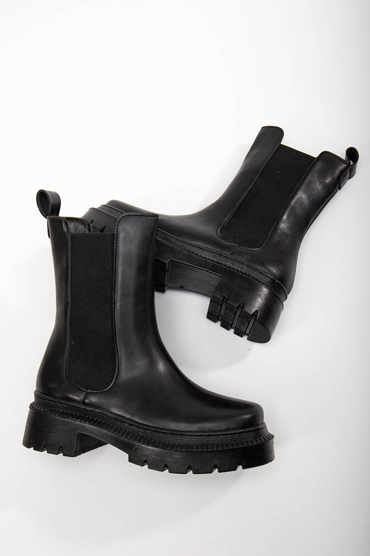 GULT Kadın Özel Üretim Kalın Tabanlı Lastikli Çekme Siyah Bot