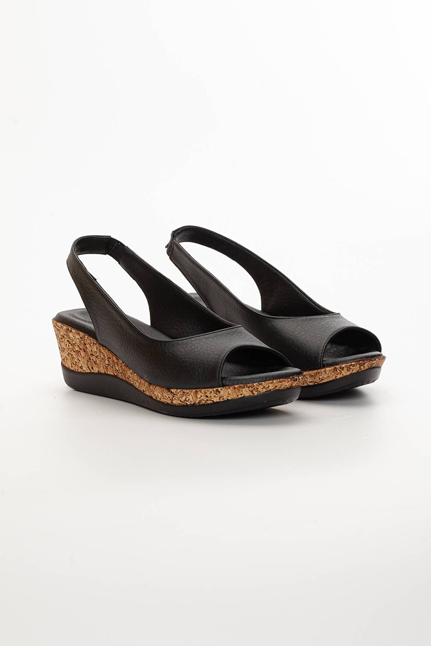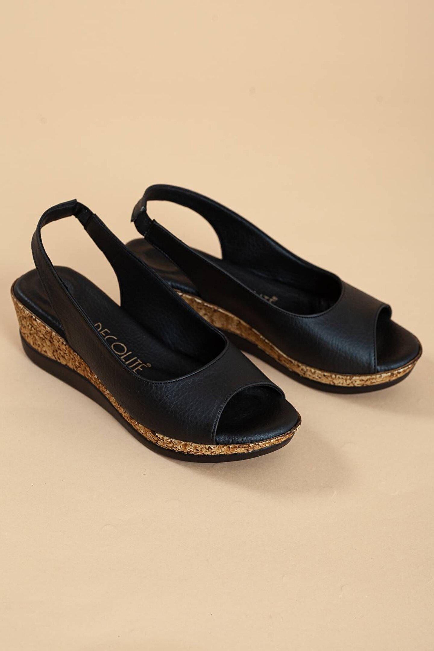 GULT Kadın Platform Topuklu Sandalet Düz Siyah
