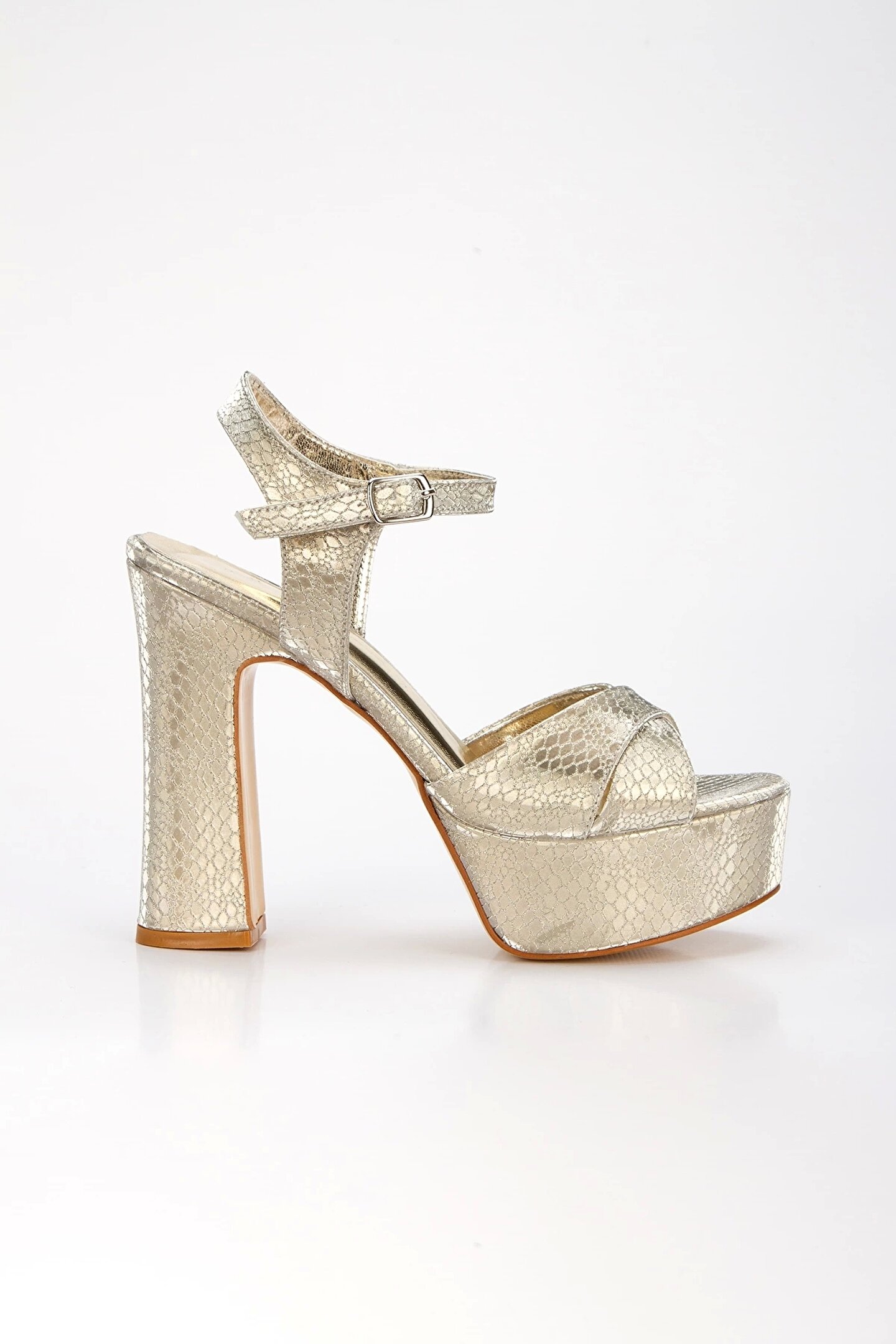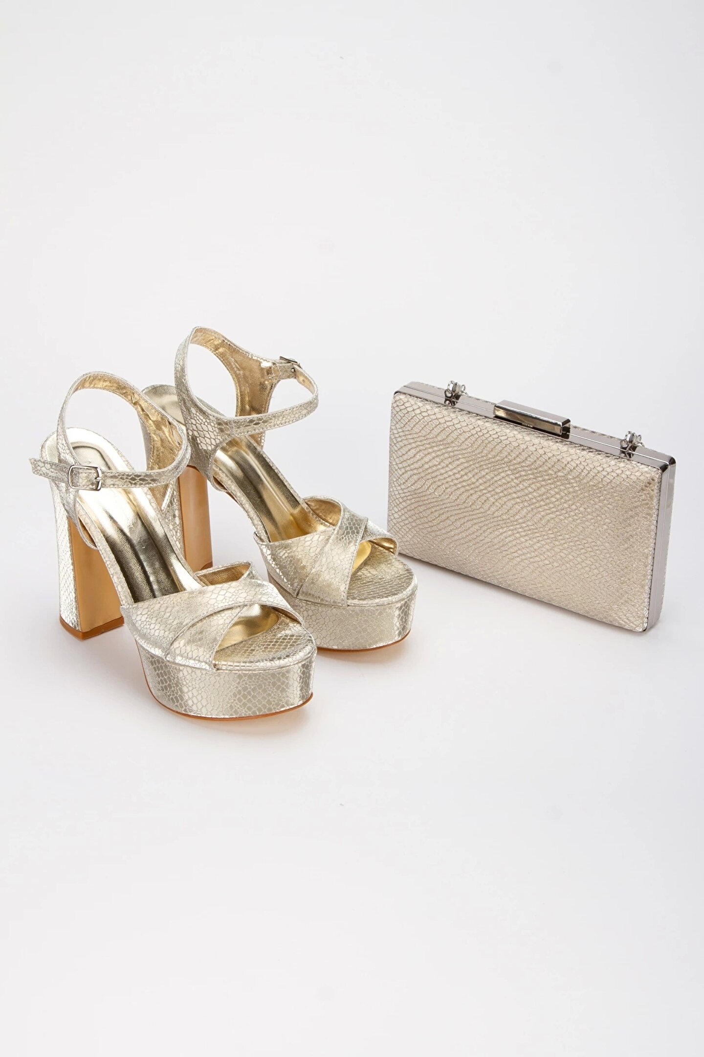 GULT Kadın Platformlu Gece Ayakkabısı Çanta Kombini ÇAPRAZ ALTIN