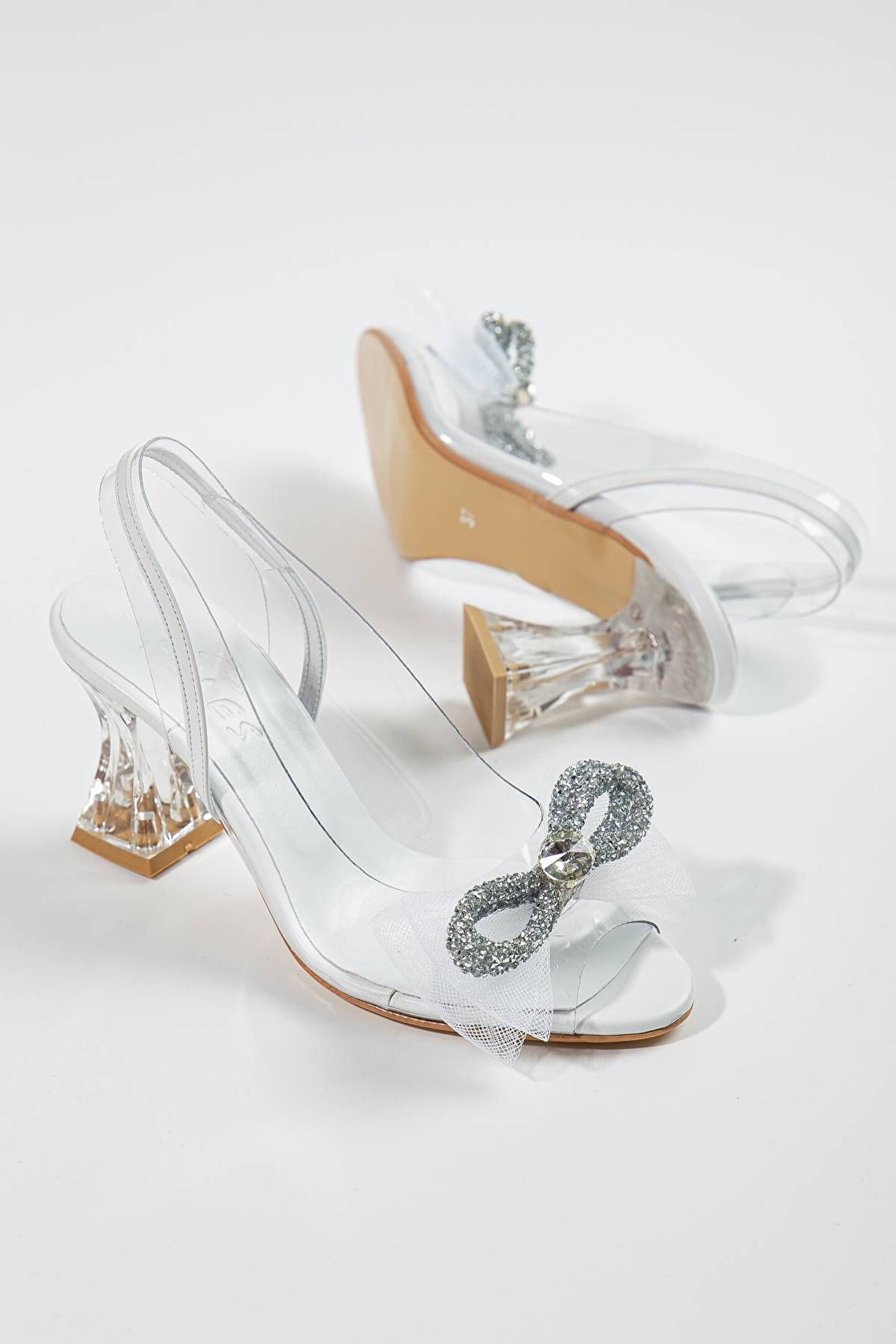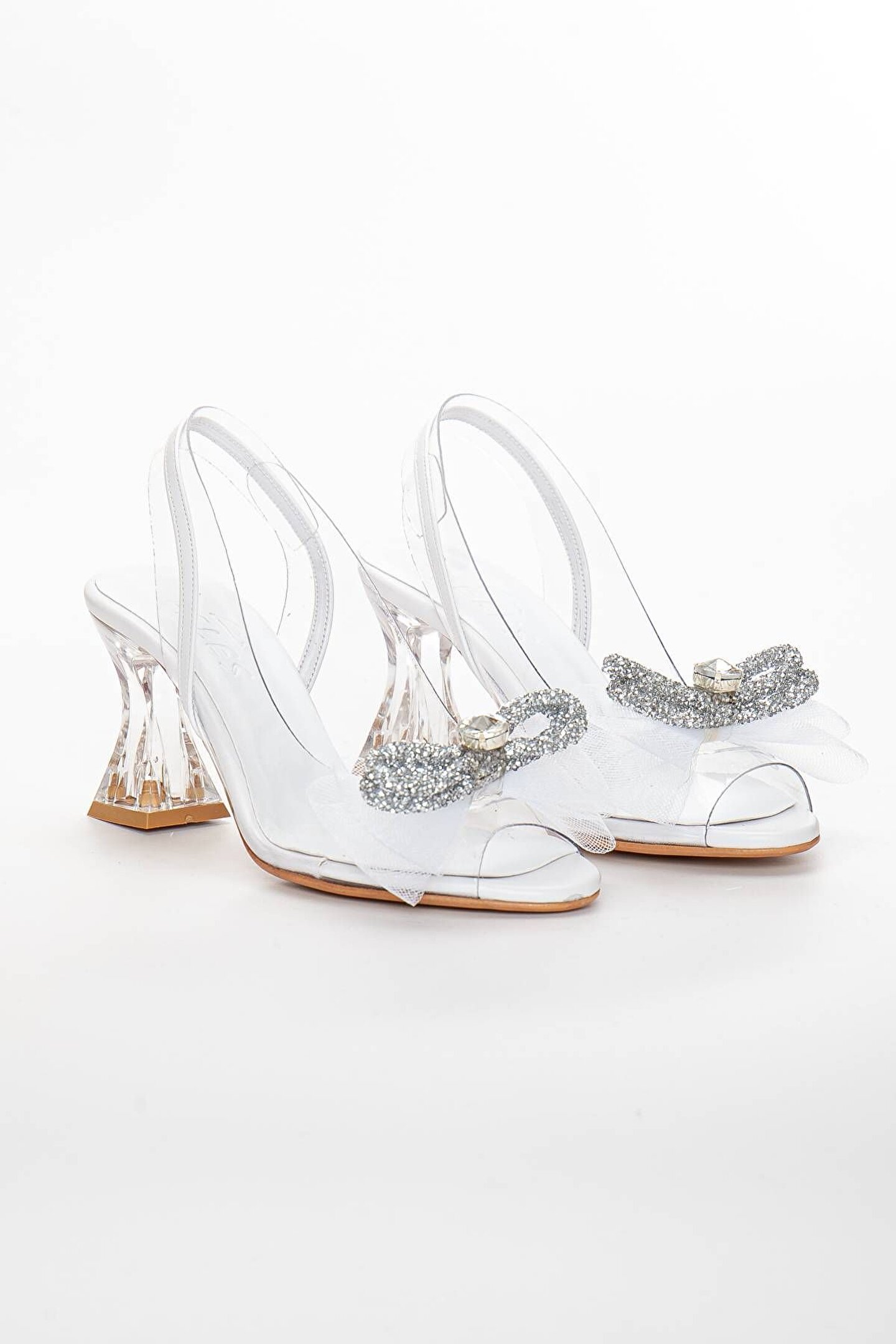 GULT Kadın Şeffaf Özel Topuklu 8 Cm Prenses Ayakkabısı Beyaz