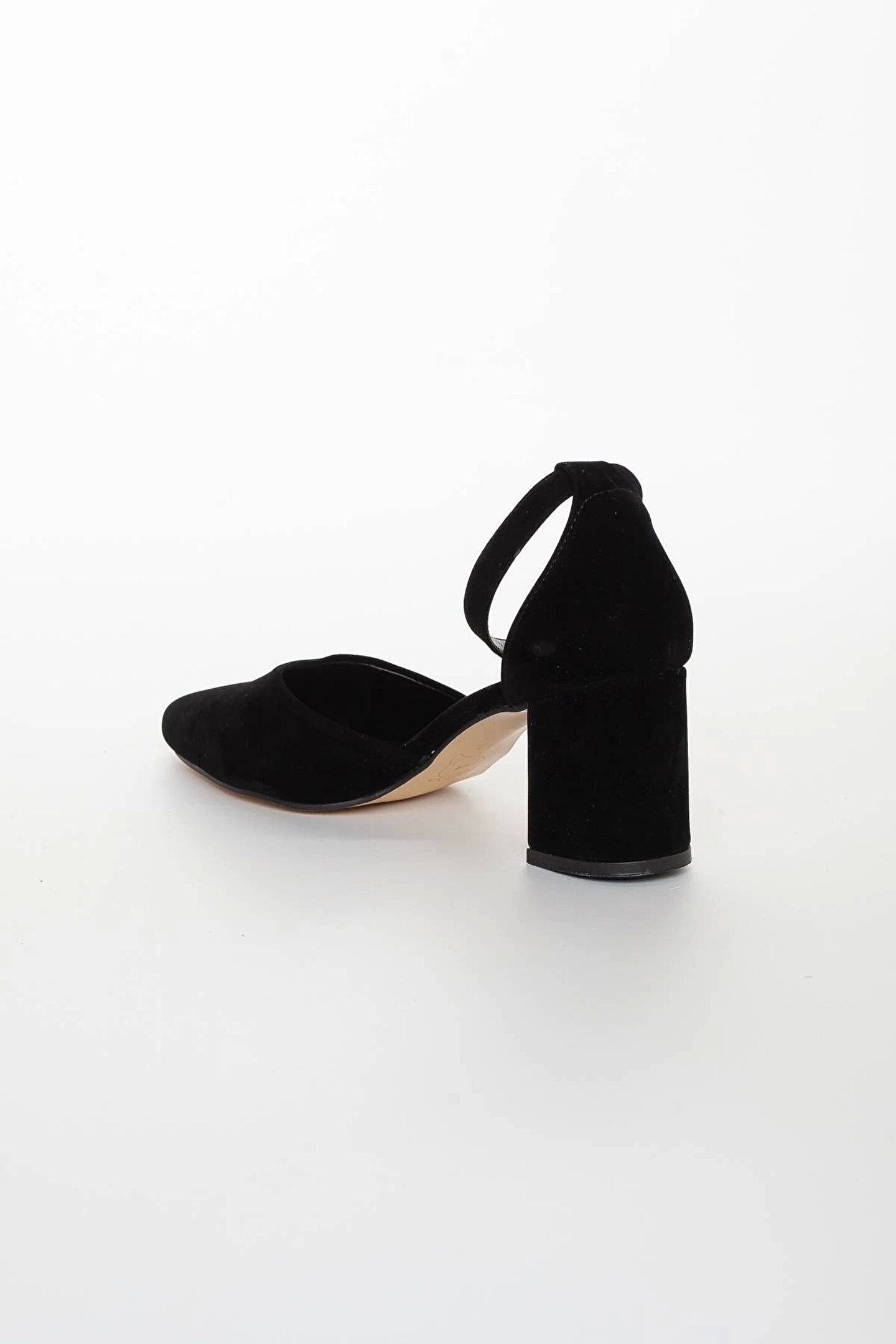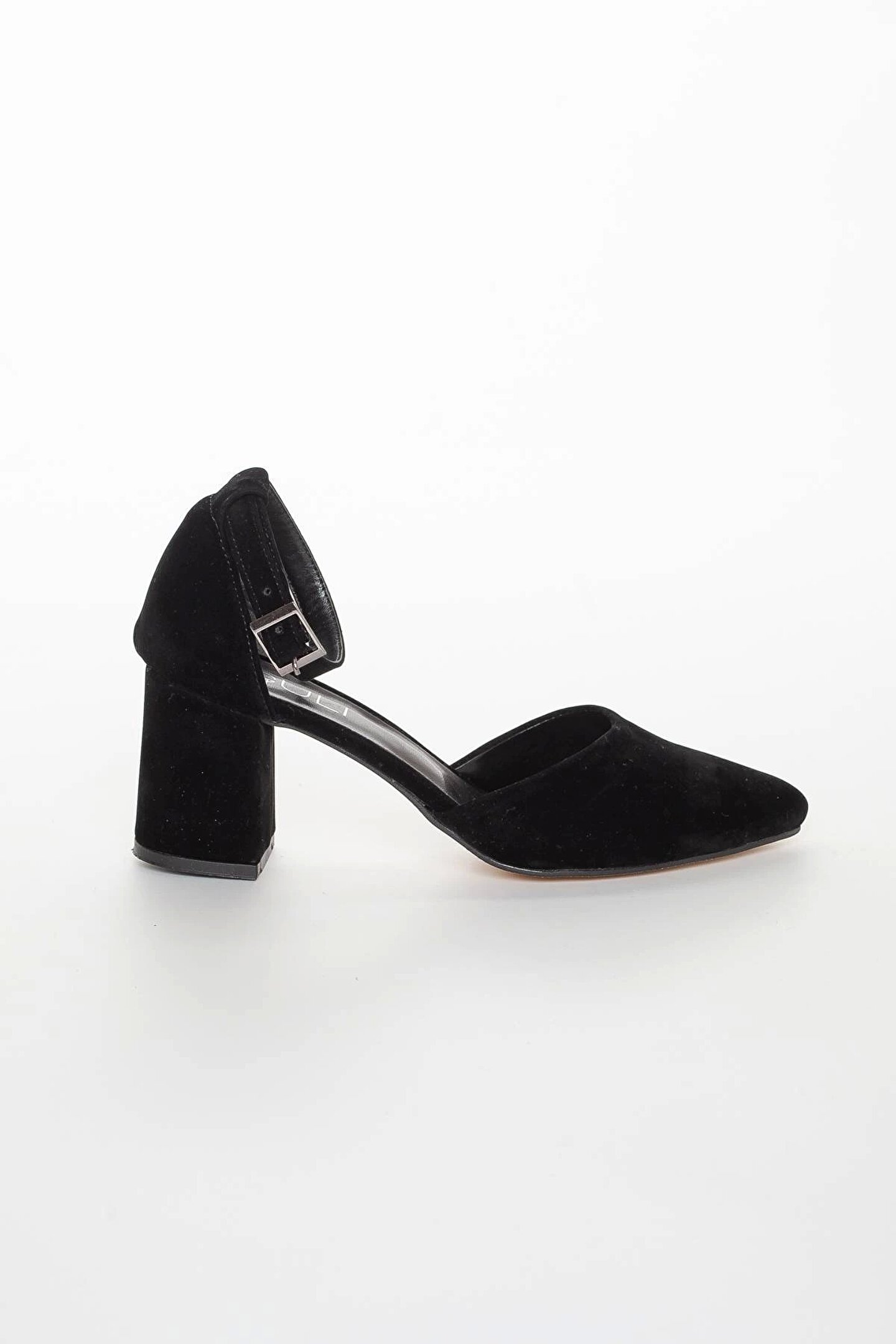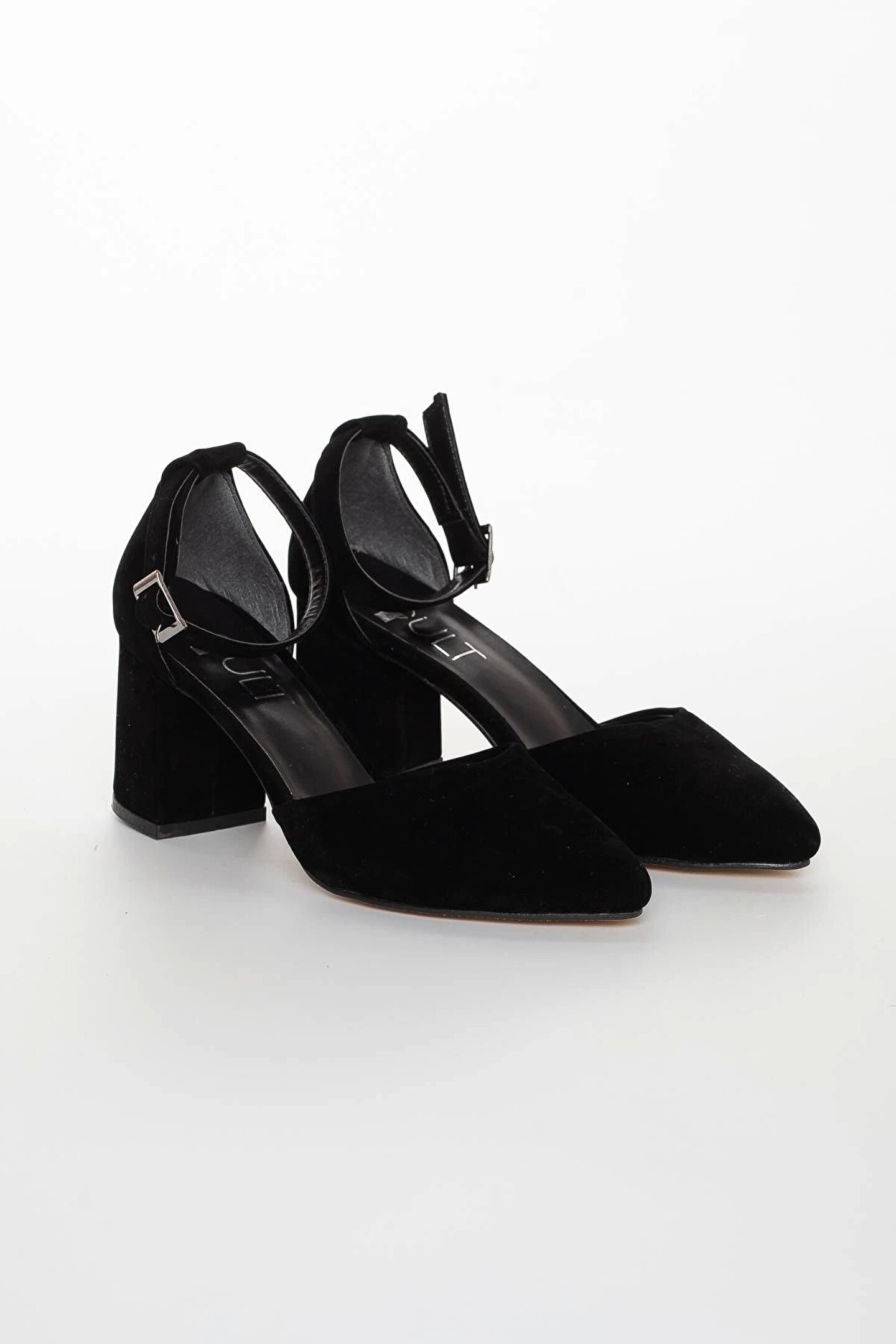 GULT Kadın Siyah Süet Kalın Topuklu Yazlık Ayakkabı Chn036