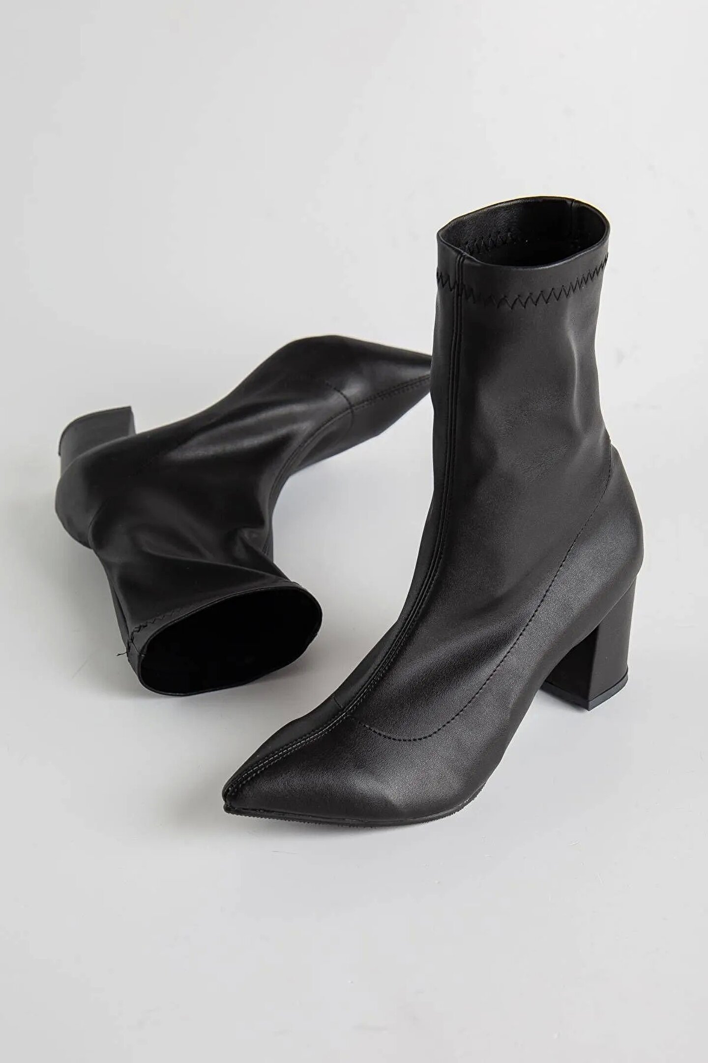 GULT Kadın Siyah Cilt Streç Bot, Kadın Topuklu Bot & Bootie