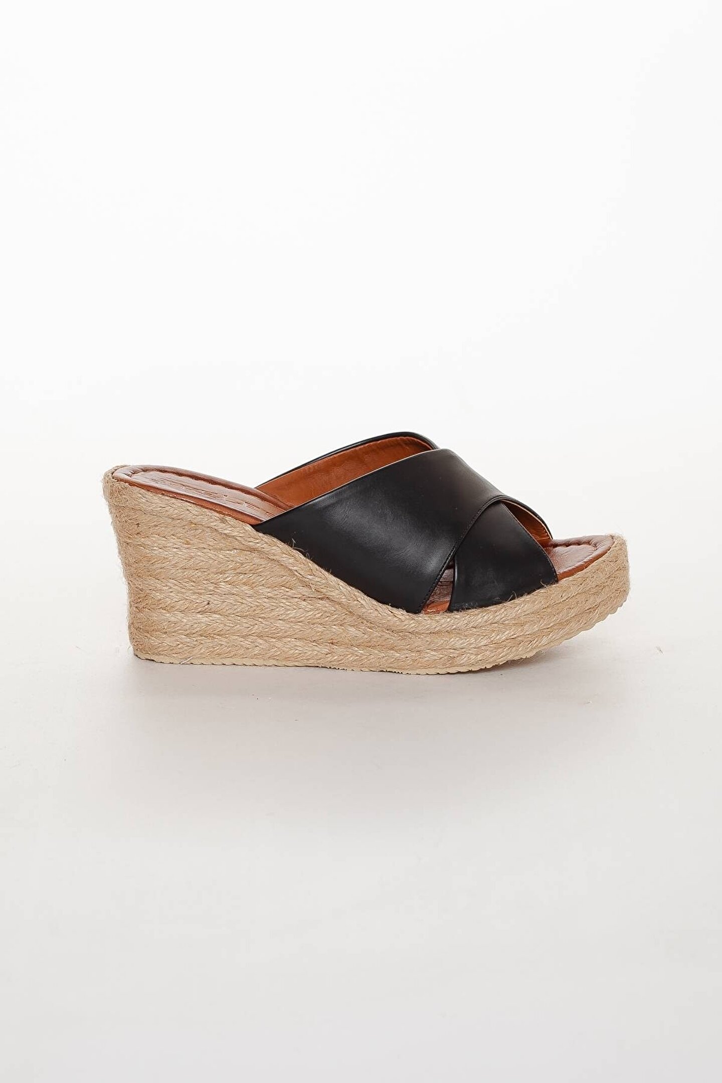 Suni deri malzemesi ile üretilmiş, uzun ömürlü ve dayanıklı kullanım sunar; Orta topuk boyu (5; 9 cm), hem rahatlık hem de şık bir duruş sağlar; Dolgu topuk tasarımı, dengeli ve konforlu bir yürüyüş deneyimi vaat eder;