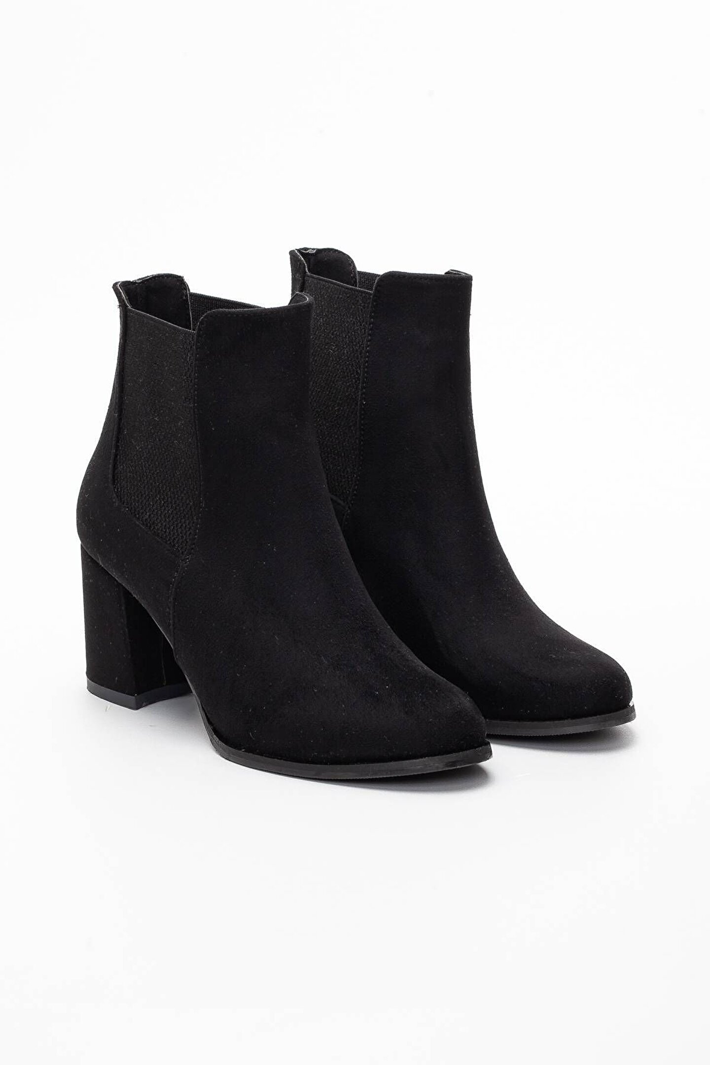 GULT Kadın Siyah Lastikli Bot, Kadın Çekme Süet Topuklu Bot & Bootie