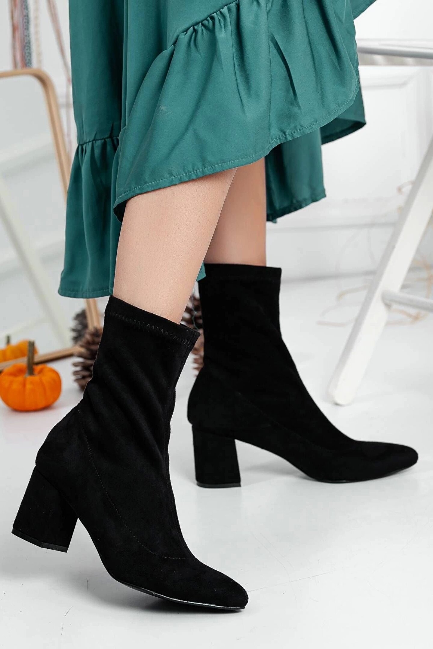 Kadın Siyah Streç Bot, Kadın Süet Topuklu Bot & Bootie. KALIP BİLGİSİ: TAM KALIP ; TOPUK YÜKSEKLİĞİ: 6 CM ; DIŞ MALZEME: 1. KALİTE AYAKKABILIK STREÇ; ASTAR: ASTARSIZ KOLAY GİYİM; TOPUK TİPİ: KALIN TOPUK ; TABAN: NEOLİT TABAN ;
