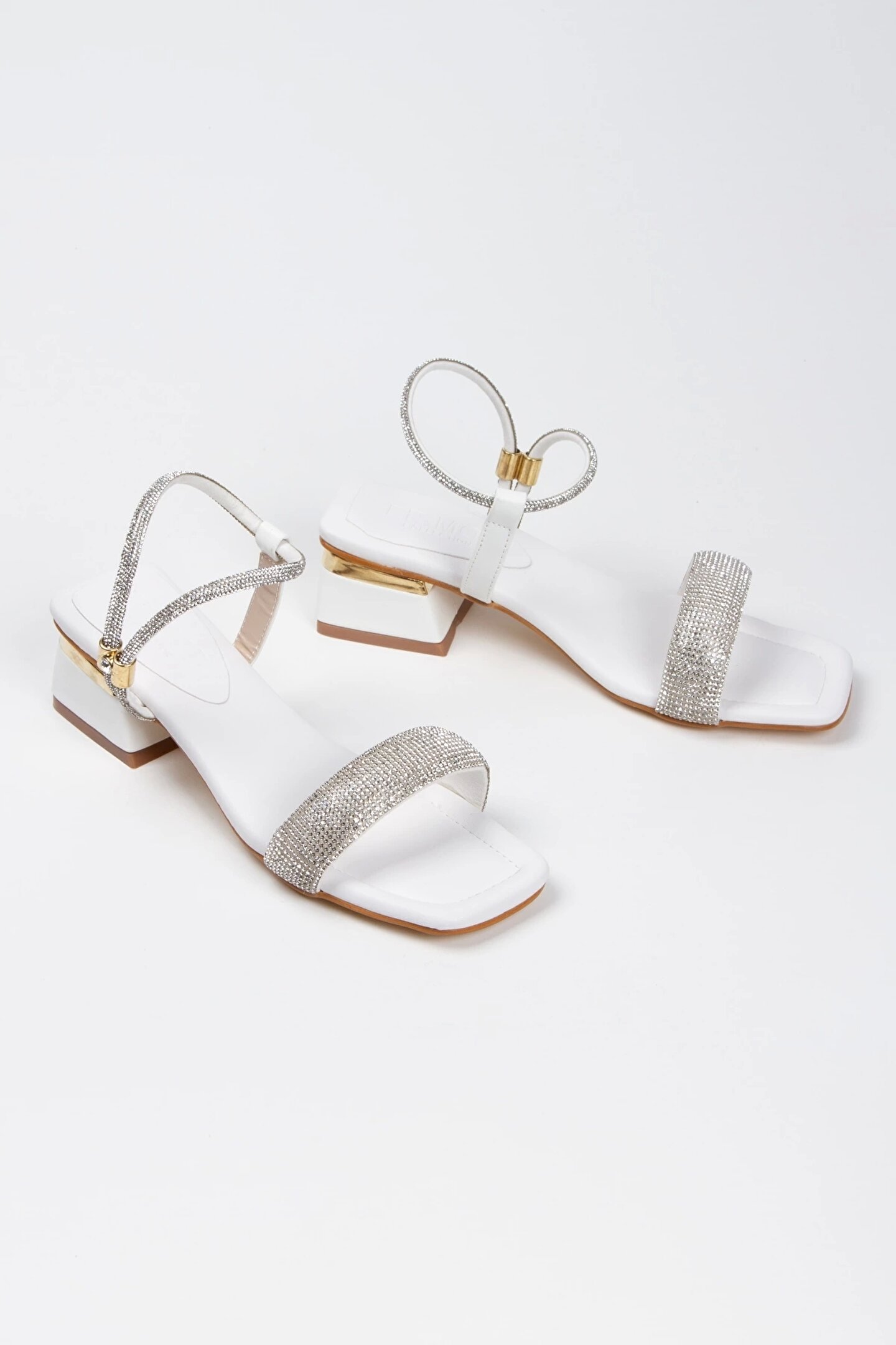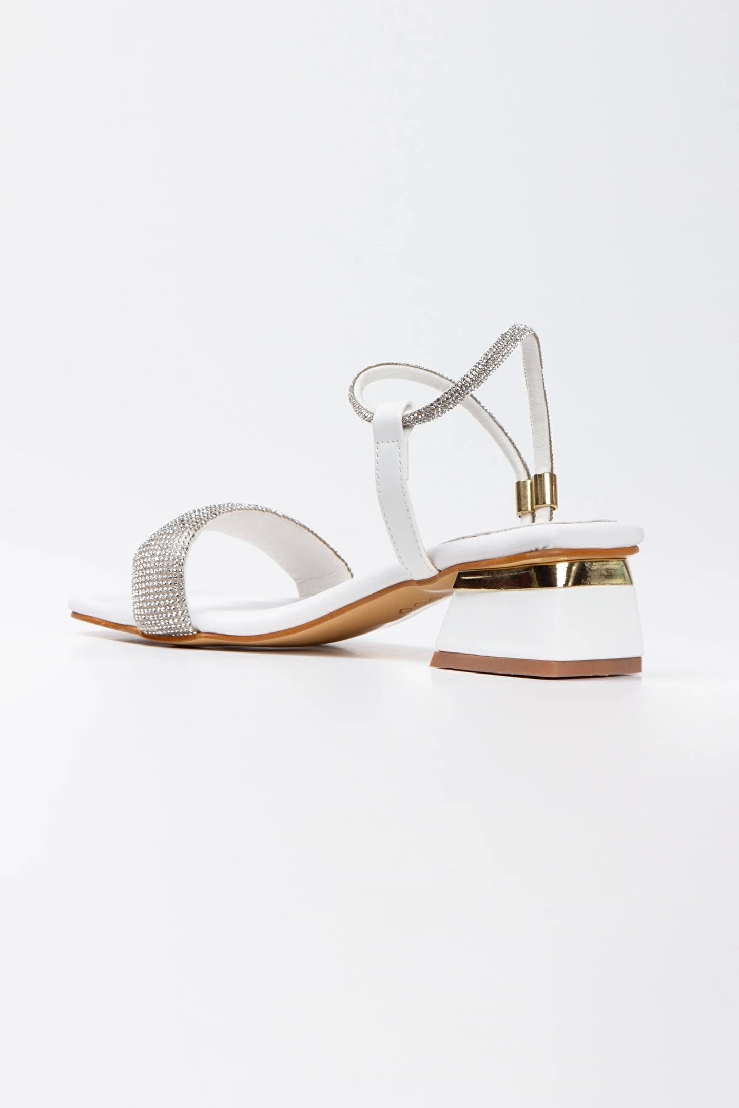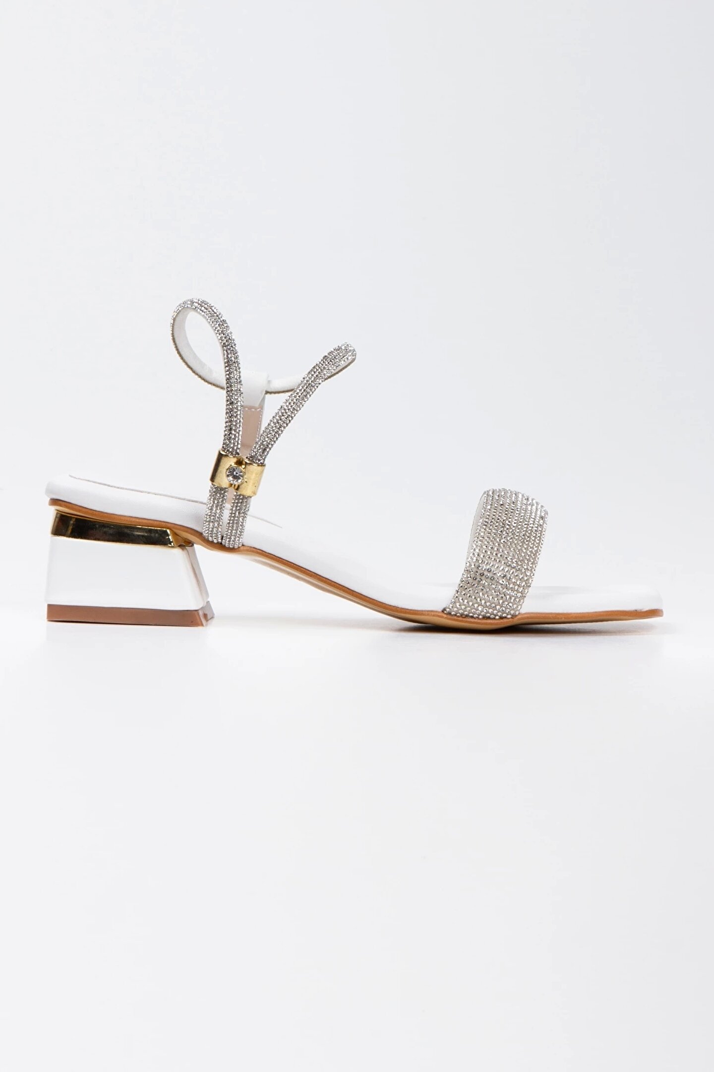 GULT Kadın Beyaz Taşlı Kısa Kalın Topuklu Abiye Ayakkabı