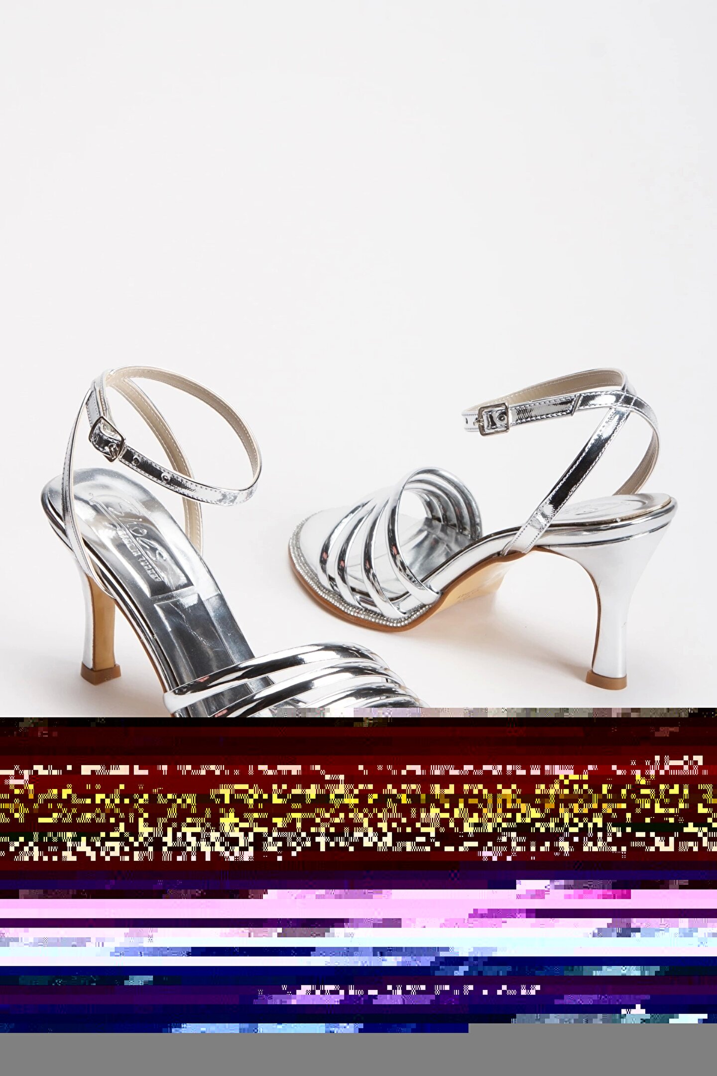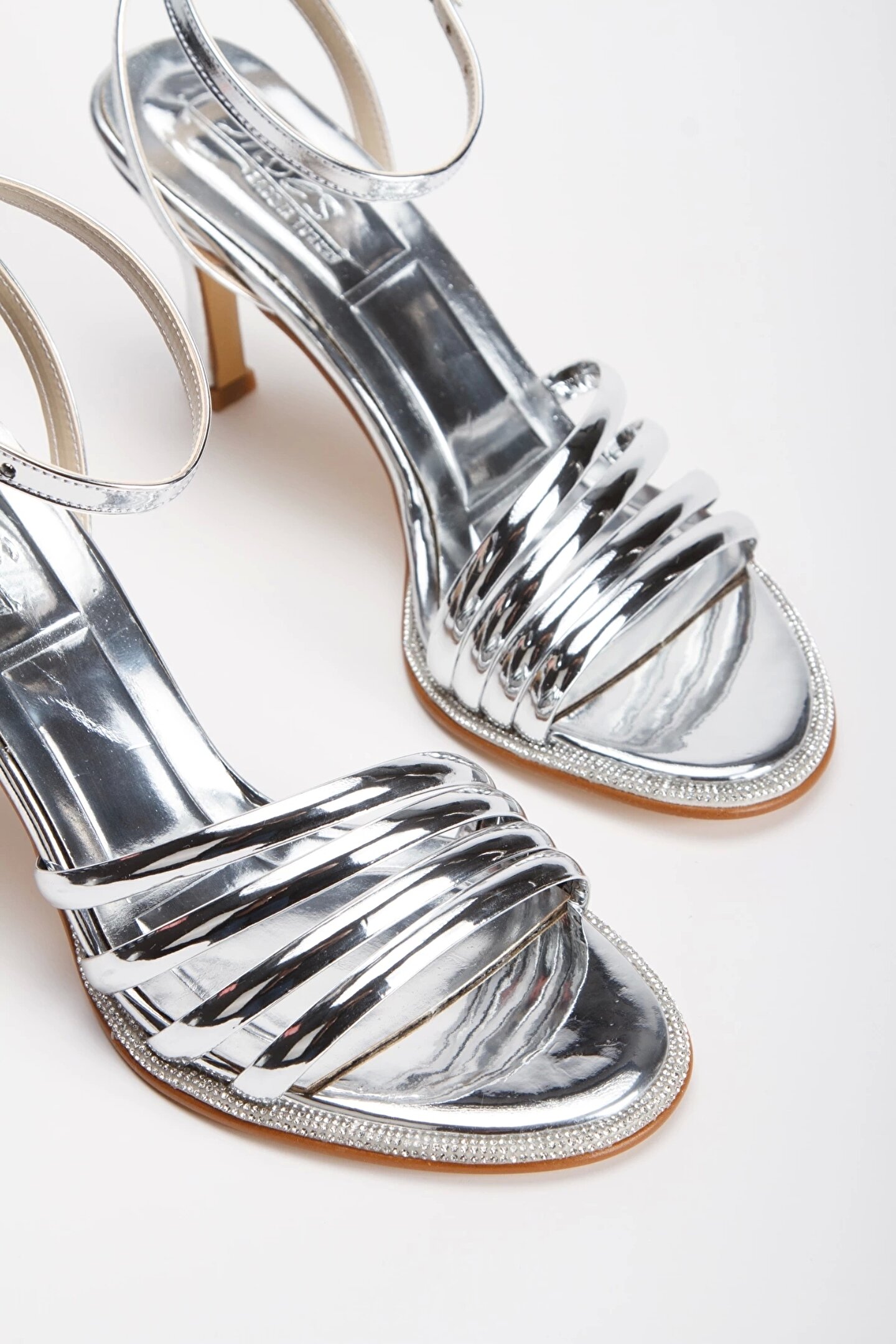 GULT Kadın Taşlı İnce Topuklu Abiye Ayakkabı Gümüş Ayna