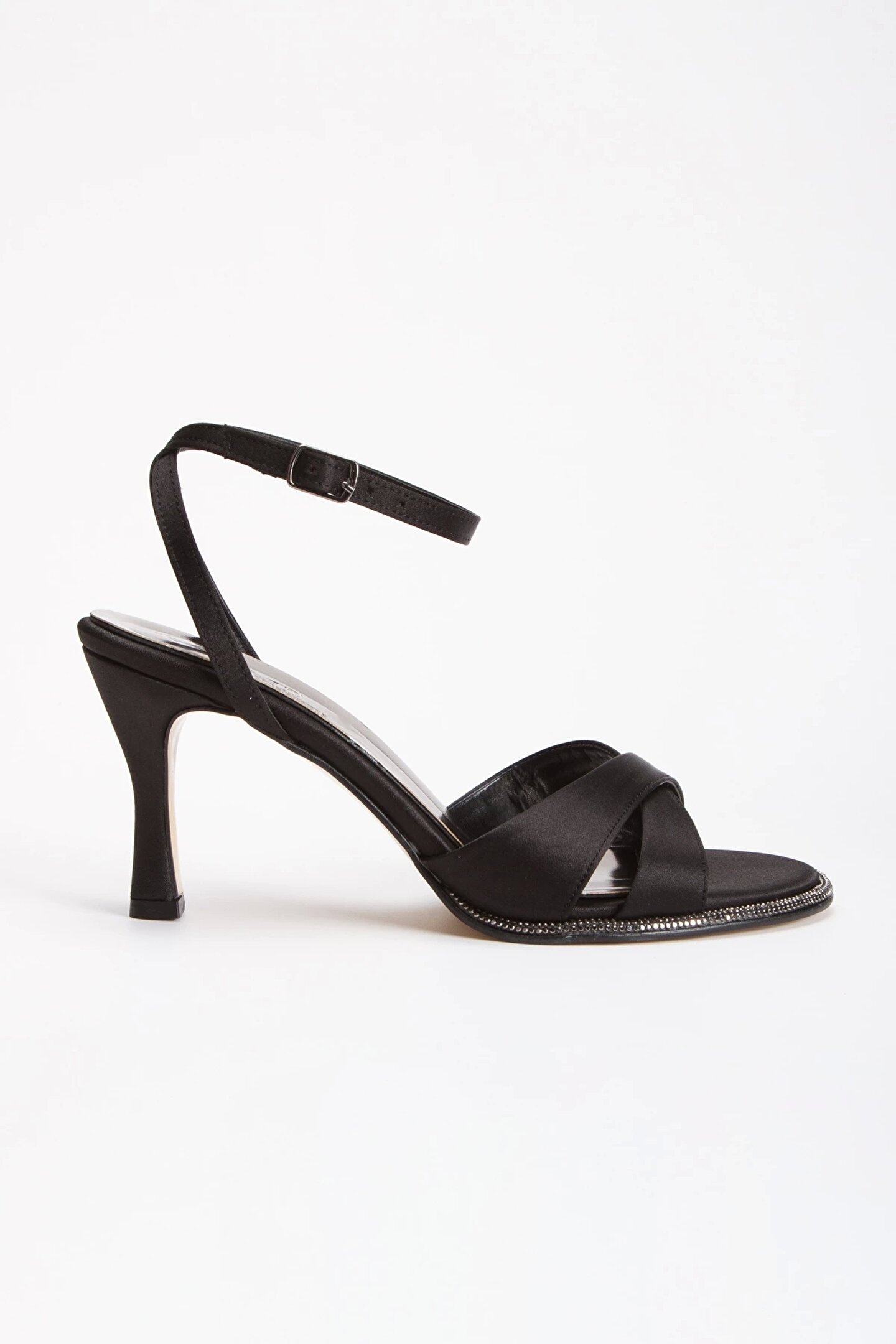 GULT Kadın Taşlı İnce Topuklu Abiye Ayakkabı Siyah Saten
