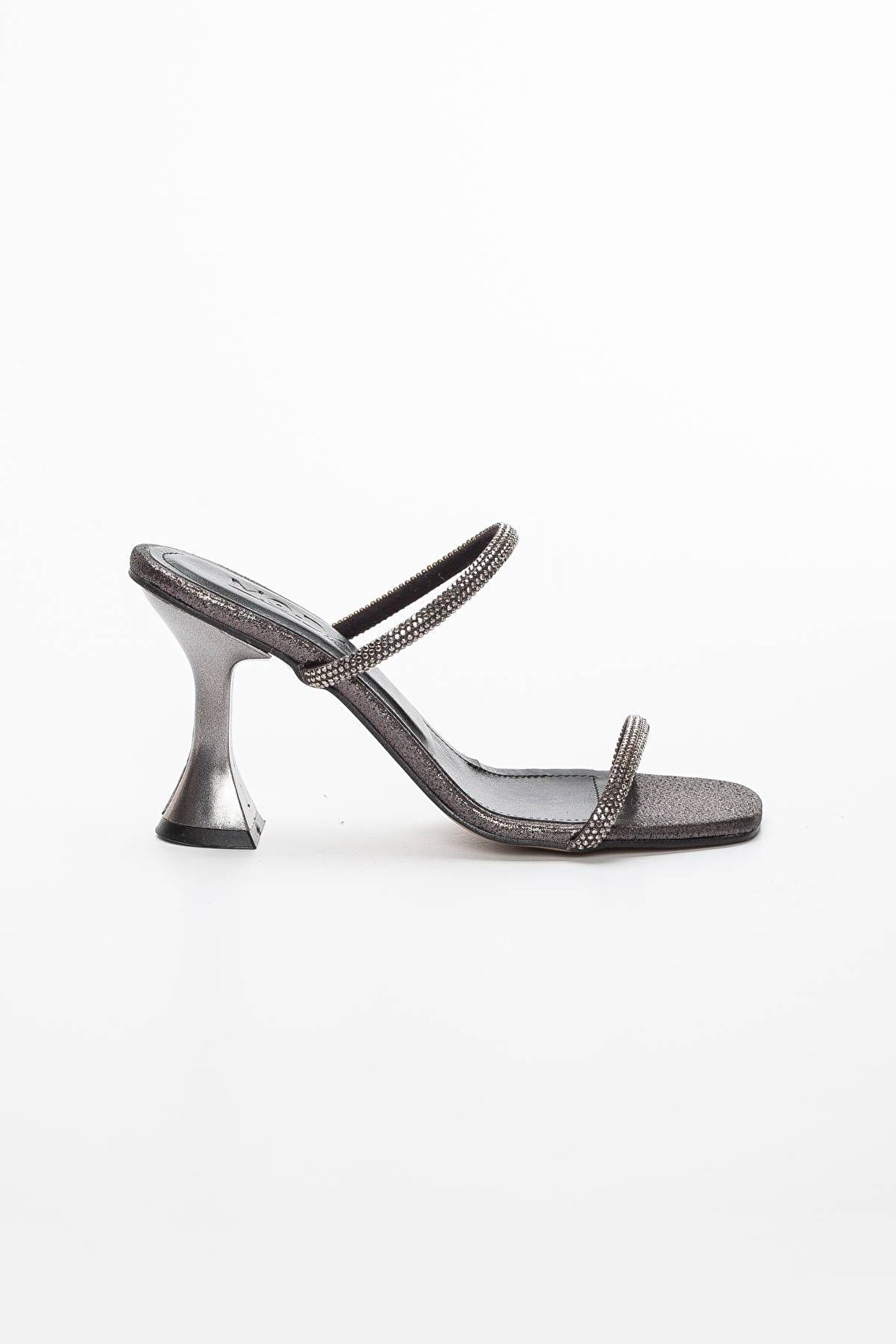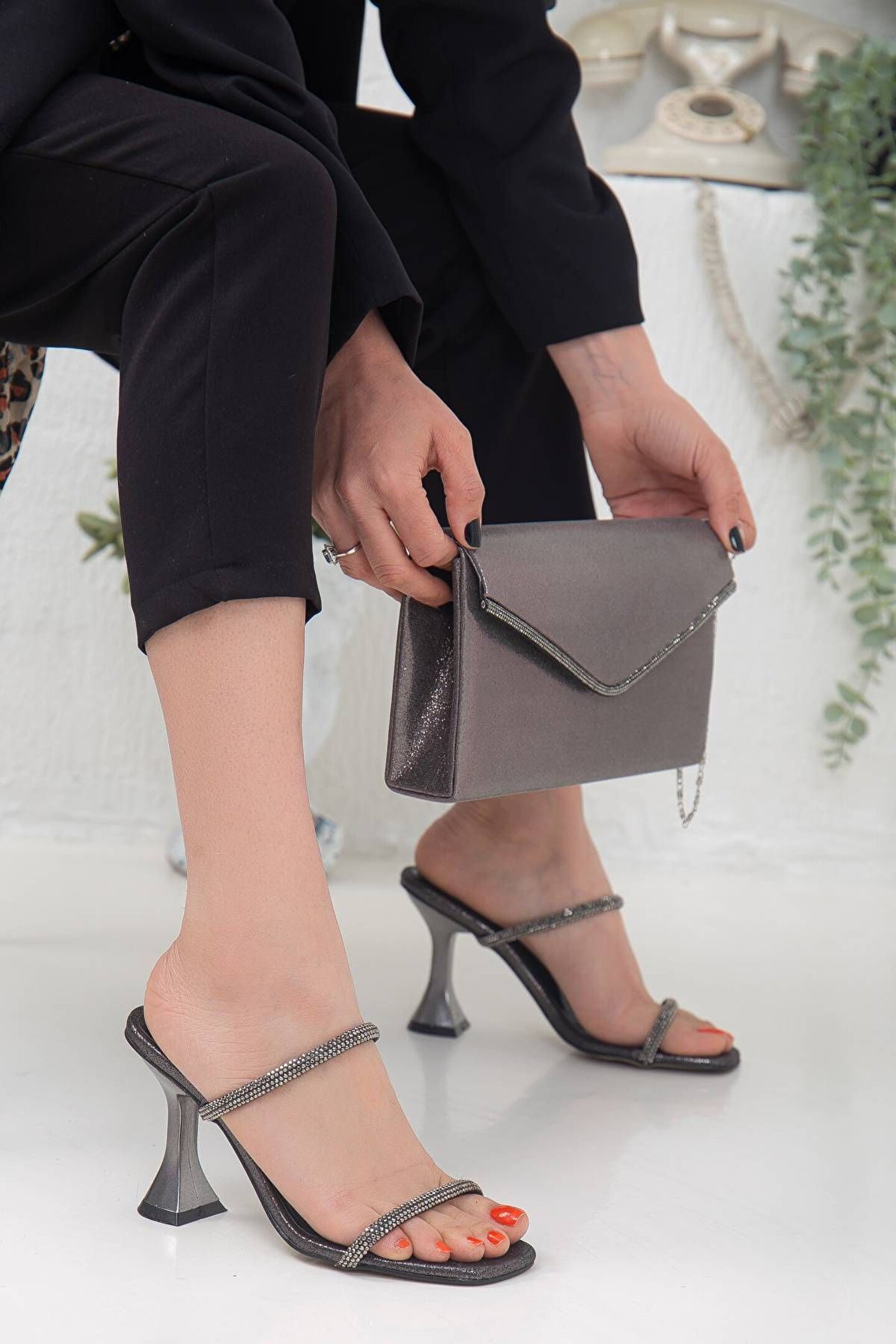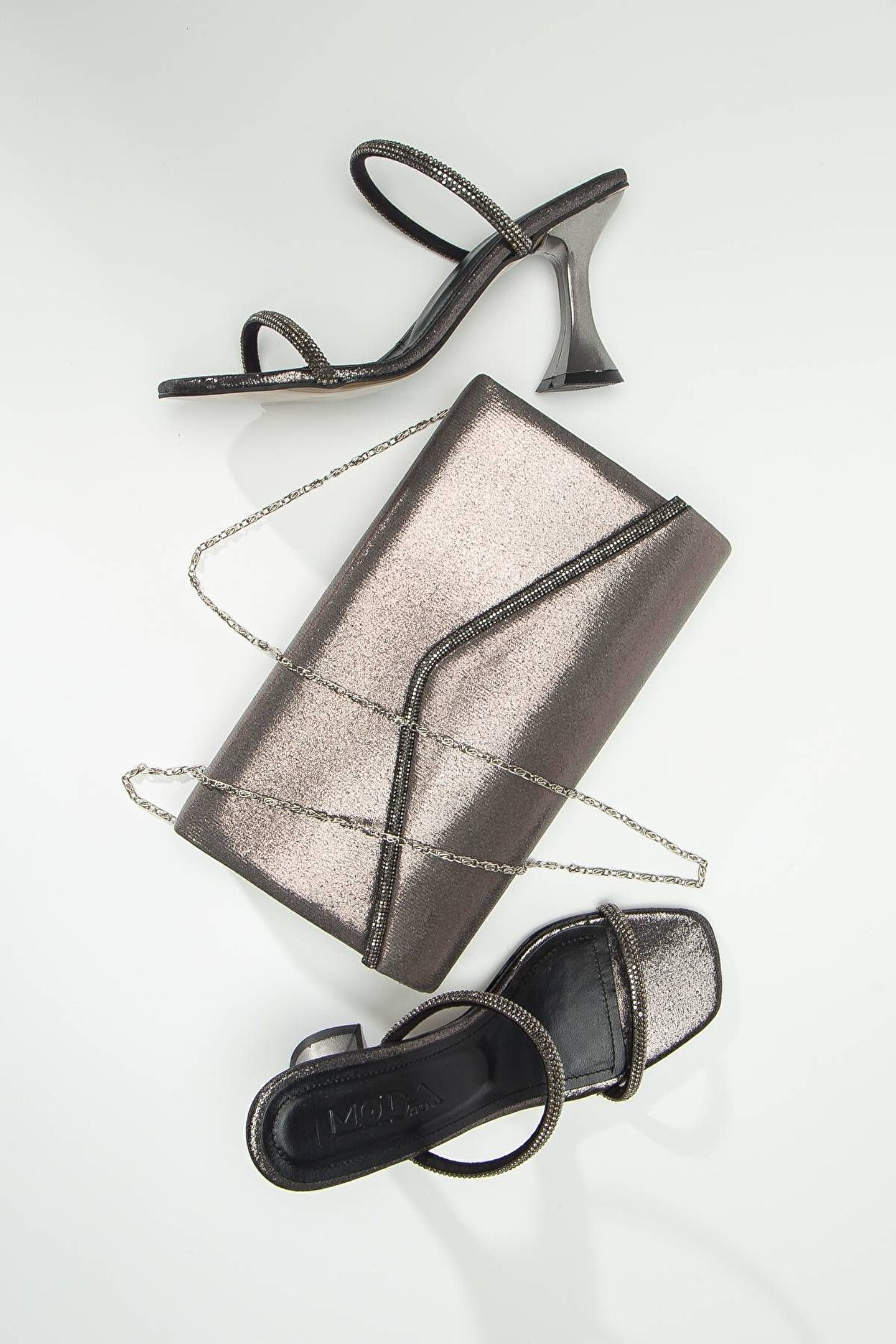 GULT Kadın Taşlı Terlik Ve Çanta Kombini Platin